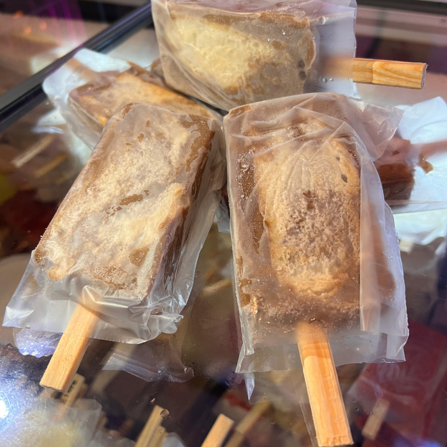 Paleta de temporada/crema ¡Por temporada! Tienes que probar nuestra deliciosa paleta hecha con chocolate abuelita de base y trozos de pan de muerto por dentro, toda una delicia!