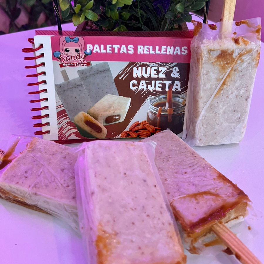 Paleta hecha con nuez, rellena con cajeta de pueblo, toda una delicia!