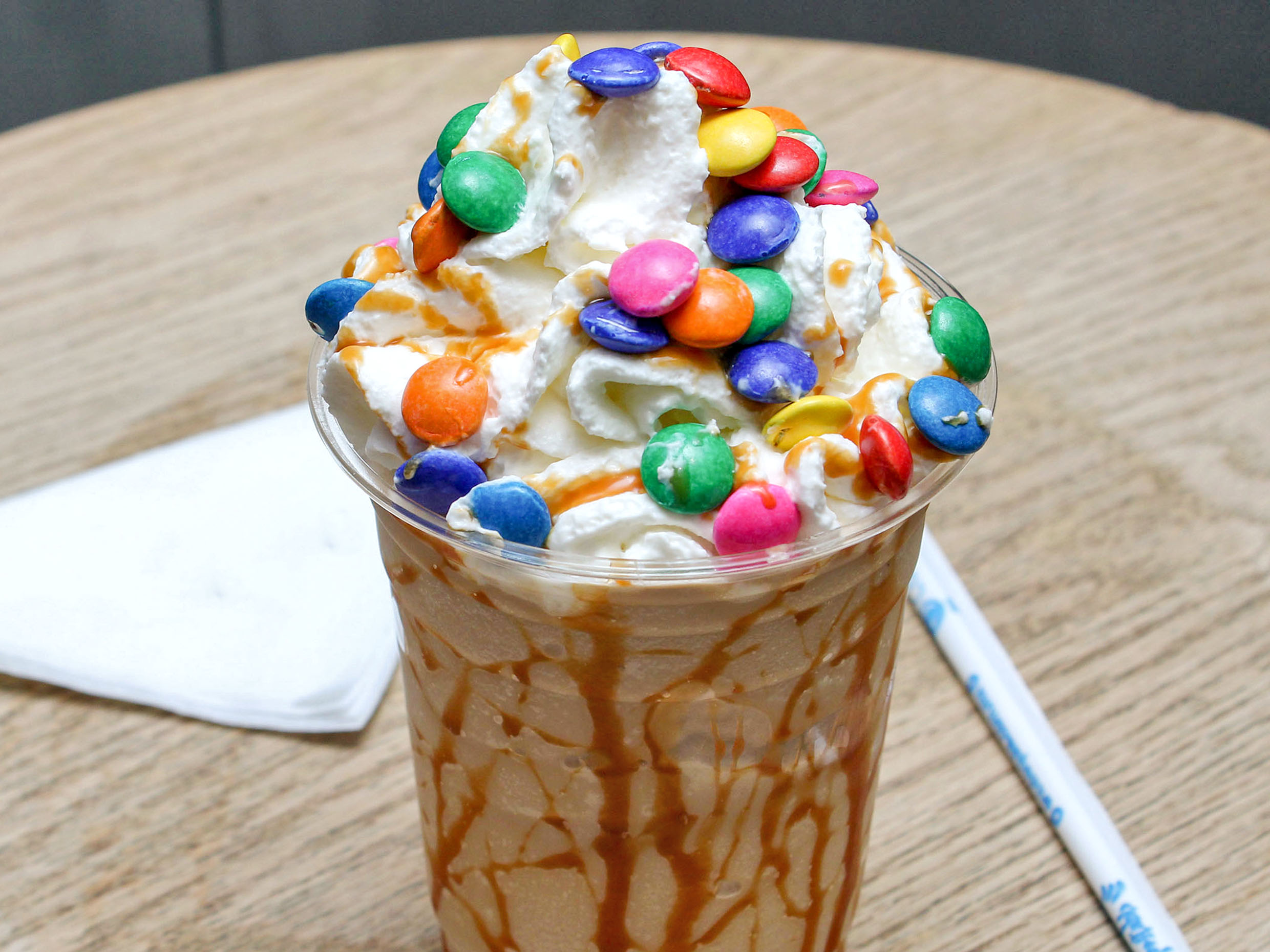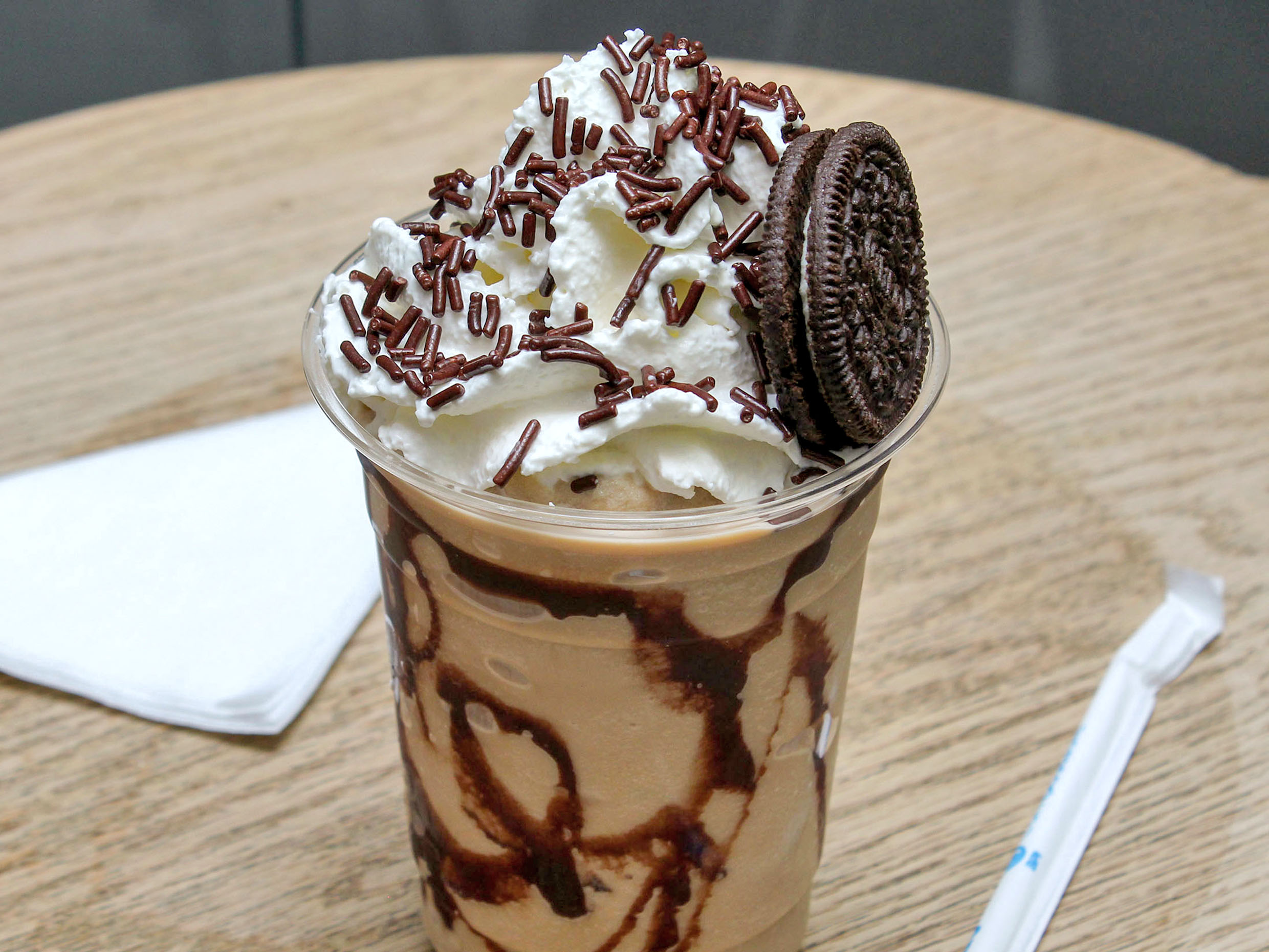 Bebida de 12 Oz de frappé de café hecha con helado gourmet.
