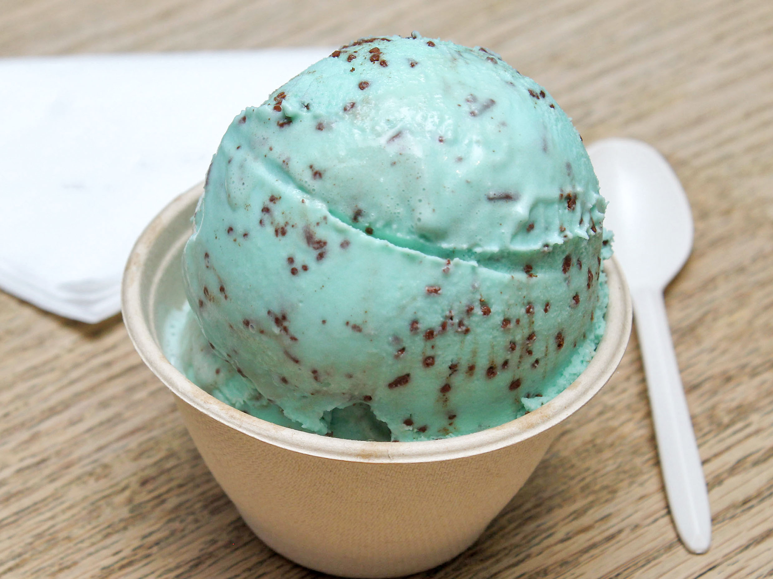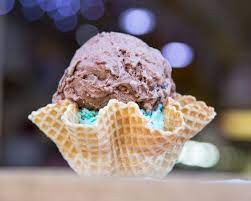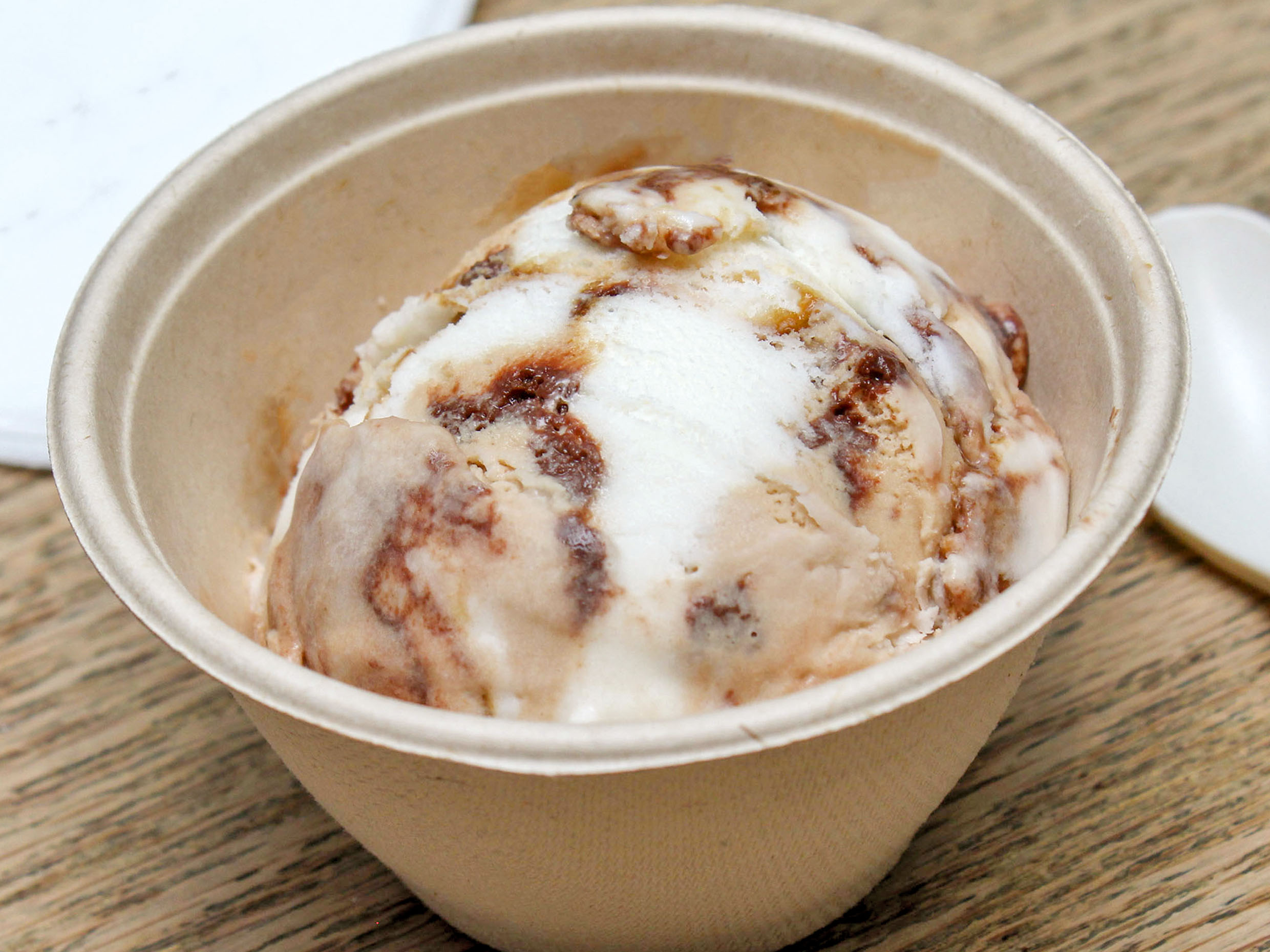 Dos bolas de helado, una de sabor tradicional y una gourmet.