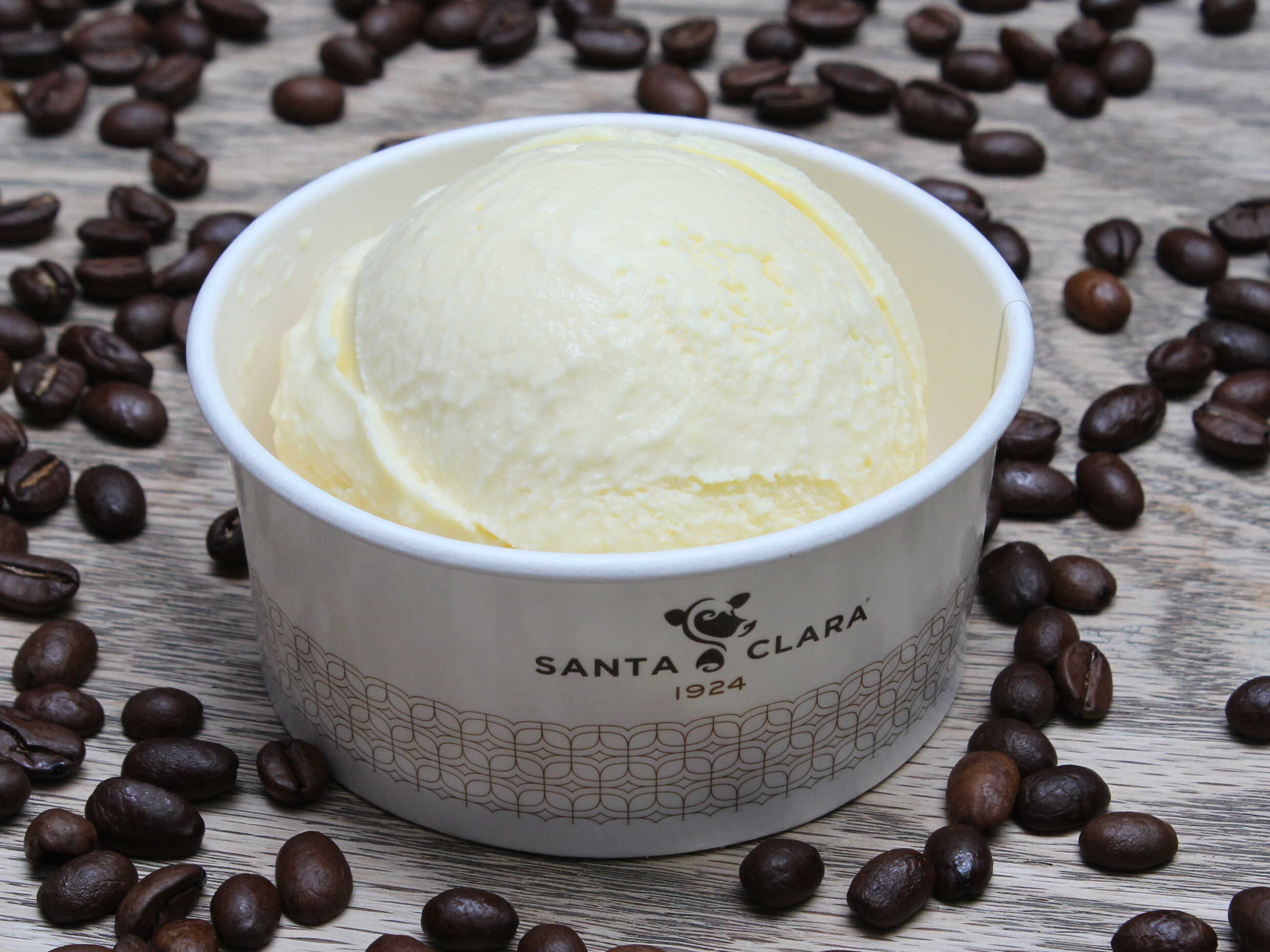 Helado gourmet de una porcion de 120 gr. de una crema en vaso para llevar con tapa.
