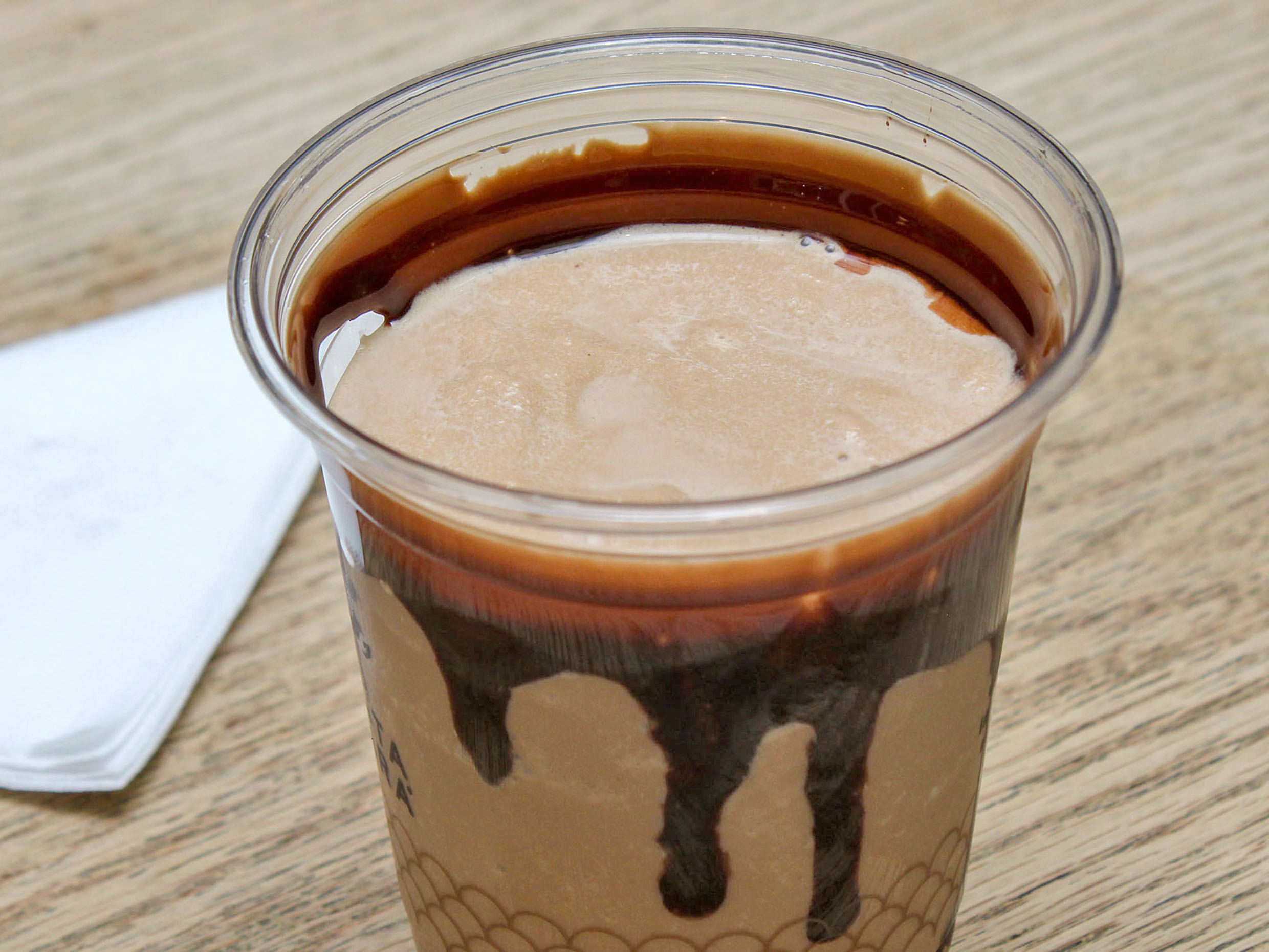 Chocolate caliente hecho con una porción de helado de chocolate o chocolate light disuelto al vapor.