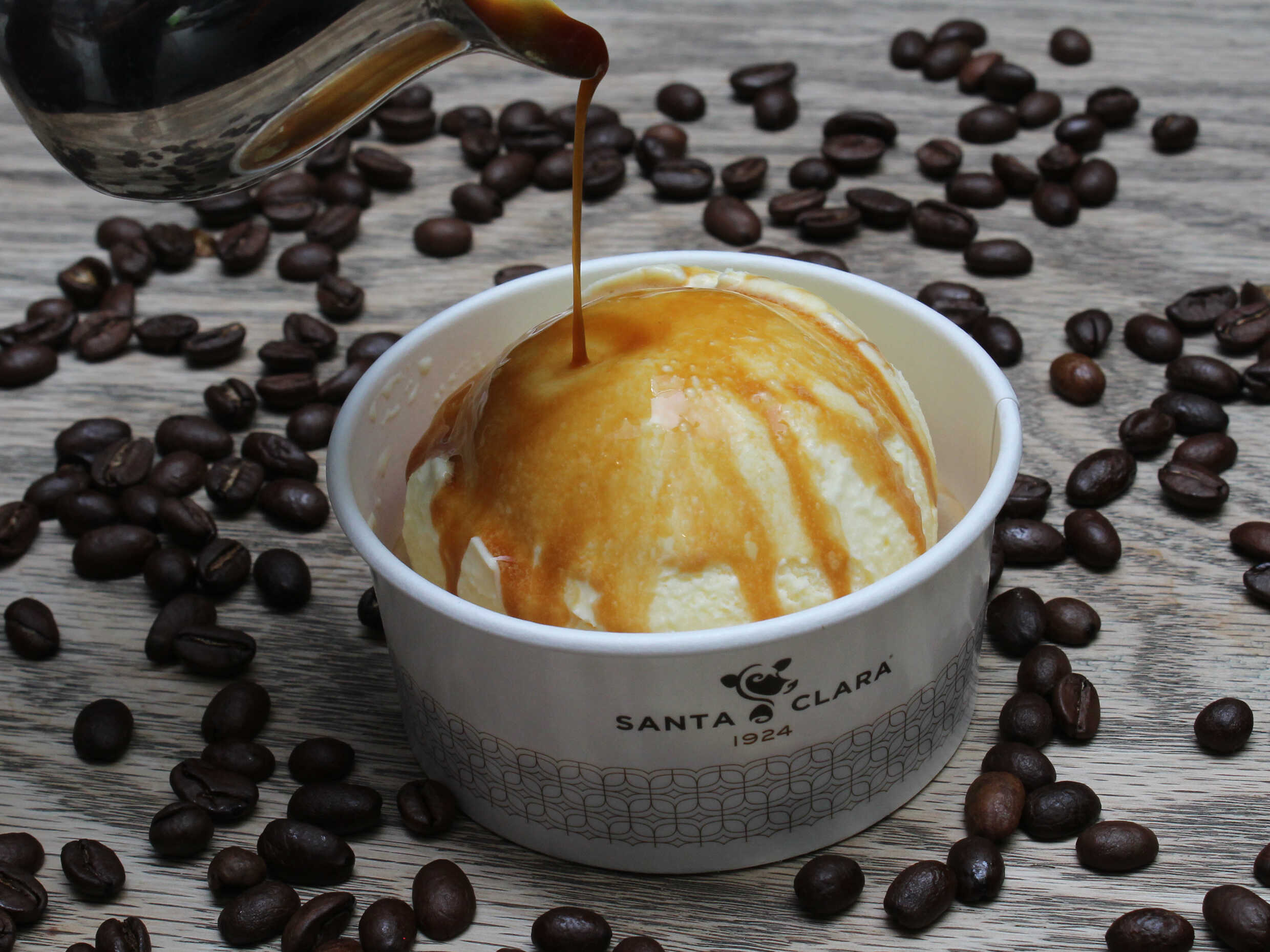 Postre hecho de una porción de helado de tu elección con una carga de café espresso.