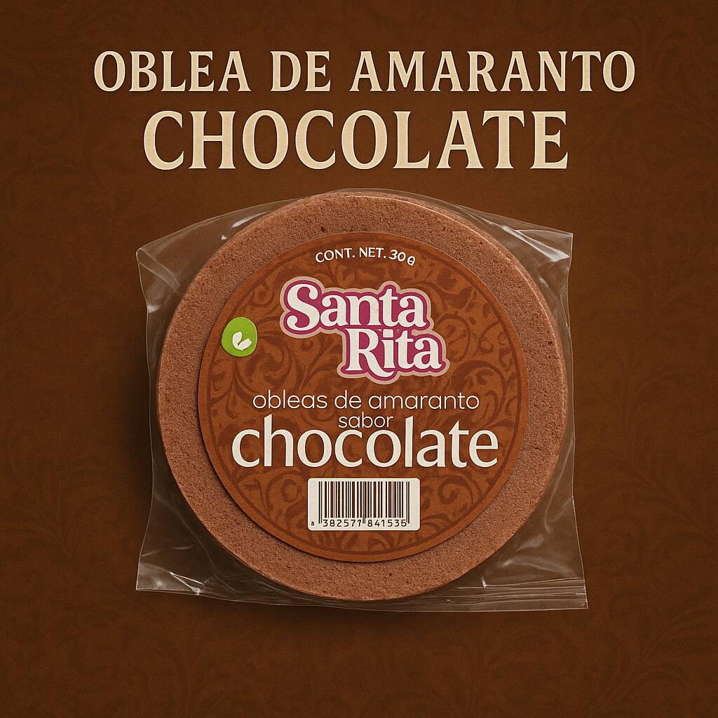 Oblea artesanal con el clásico sabor a chocolate. Ligera, crujiente y con un toque dulce que encanta a chicos y grandes. Perfecta para disfrutar en cualquier momento con el sabor de Santa Rita. 30 g