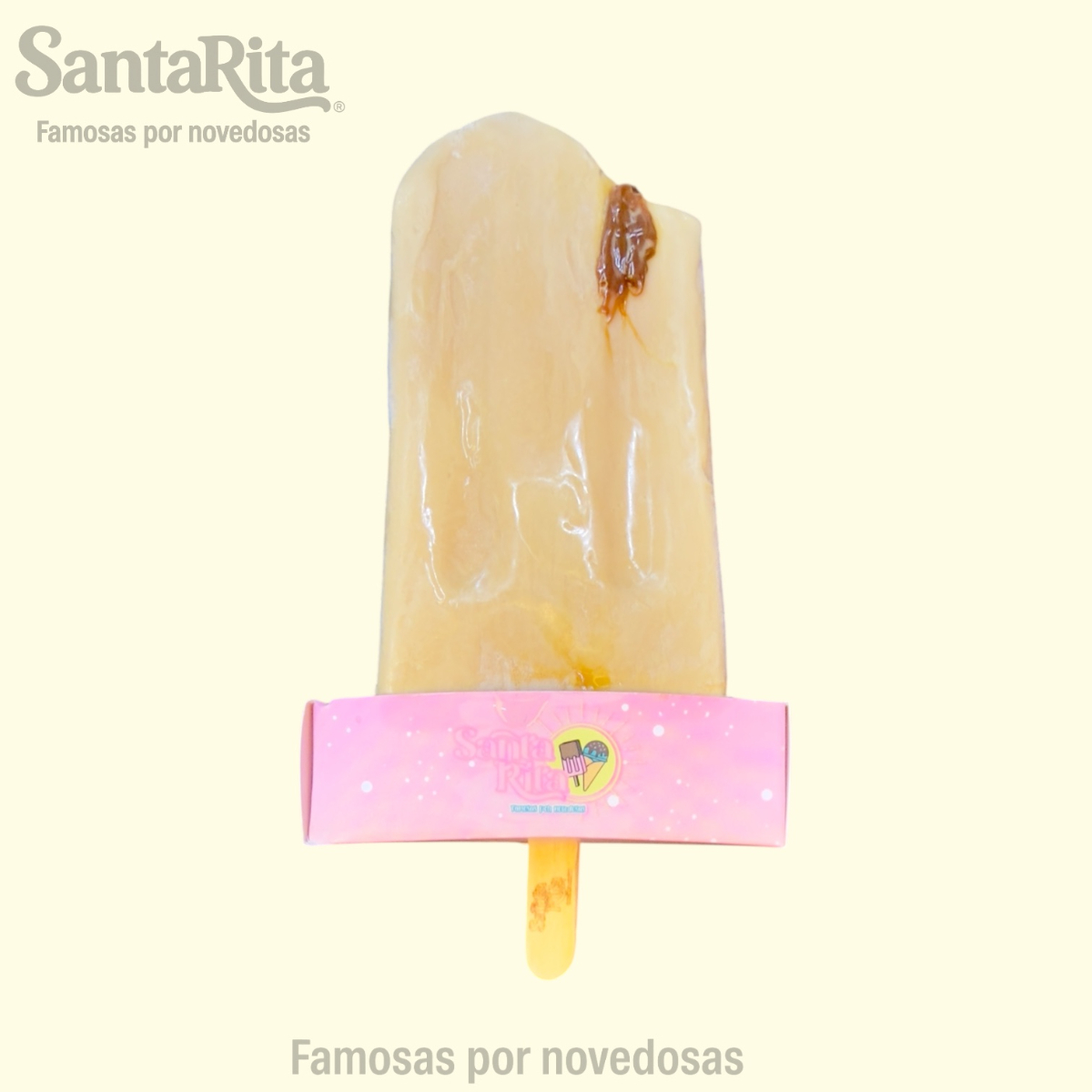 Paleta de tres leches elaborada con nuestra receta tradicional de Santa Rita, suave y cremosa en cada mordida. En su interior guarda un centro líquido de auténtica cajeta Coronado quemada, que al probarla se mezcla con la cremosidad de la paleta para crear una experiencia premium, única y llena de sabor.