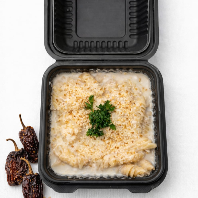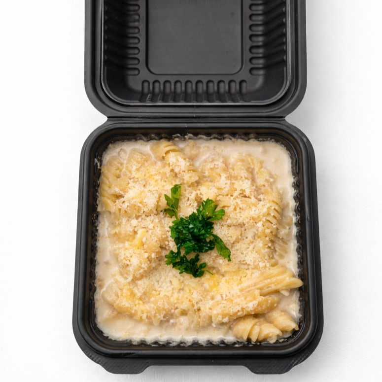 El elegante / clásico Fusilli al dente con salsa cremosa de queso parmesano. Clásico, suave y reconfortante. Ideal si buscas pasta cremosa a domicilio en CDMX · Tláhuac. 350 g
