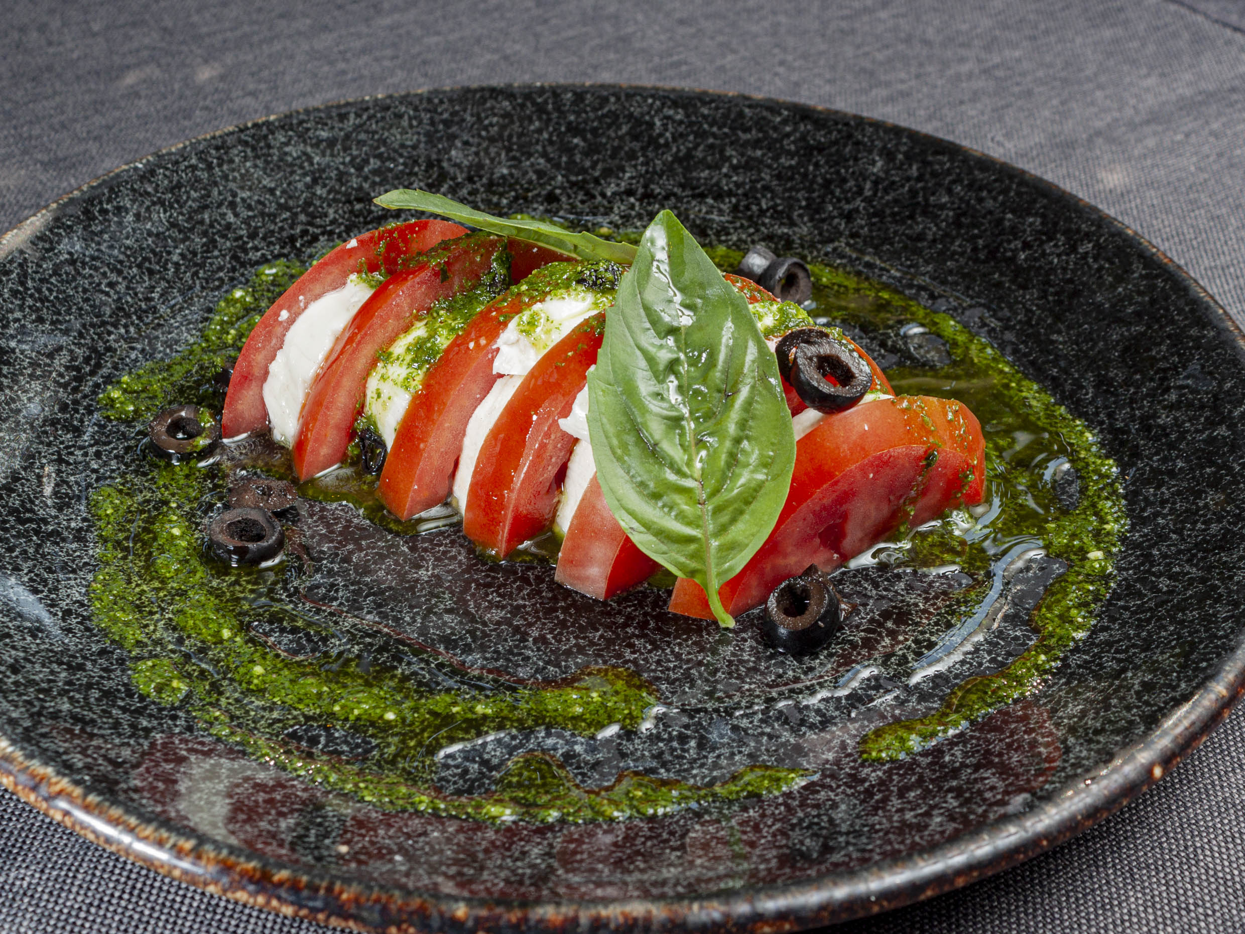 Mozzarella fresco, jitomate, aceite de olivo y albahaca.