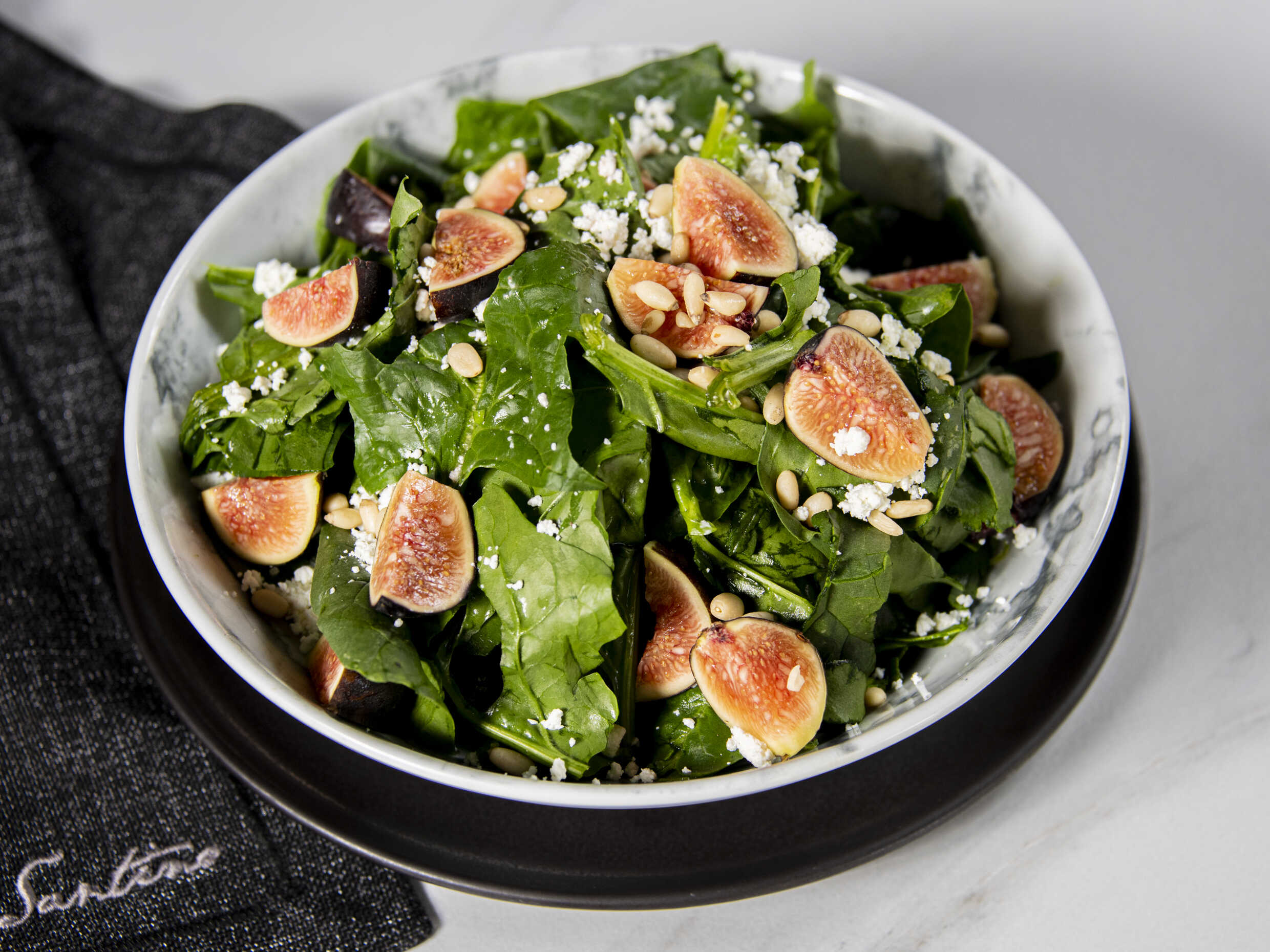 Arugula, espinaca baby, higos, piñón, queso de cabra y aderezo de tamarindo agridulce.