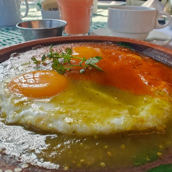 Rojos, verdes o divorciados. Fritos sobre tortilla acompañados de frijoles refritos y polvo de chicharrón.