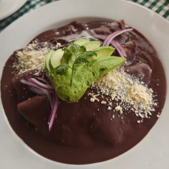Con frijoles refritos y gratinados, acompañados con salsa pico de gallo. Acompañados con chorizo.