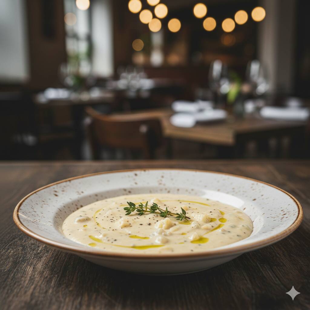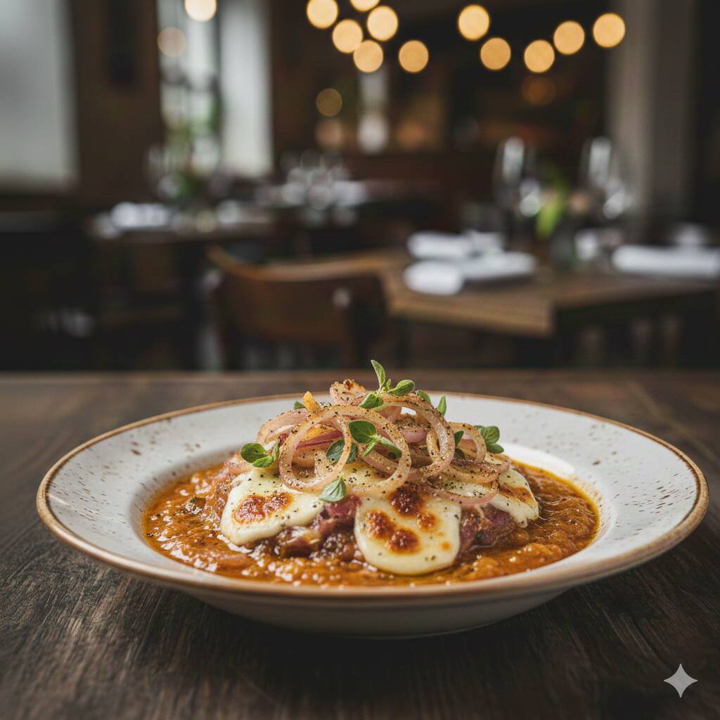 Al horno bañada en salsa blanca y gratinada con parmesano.
