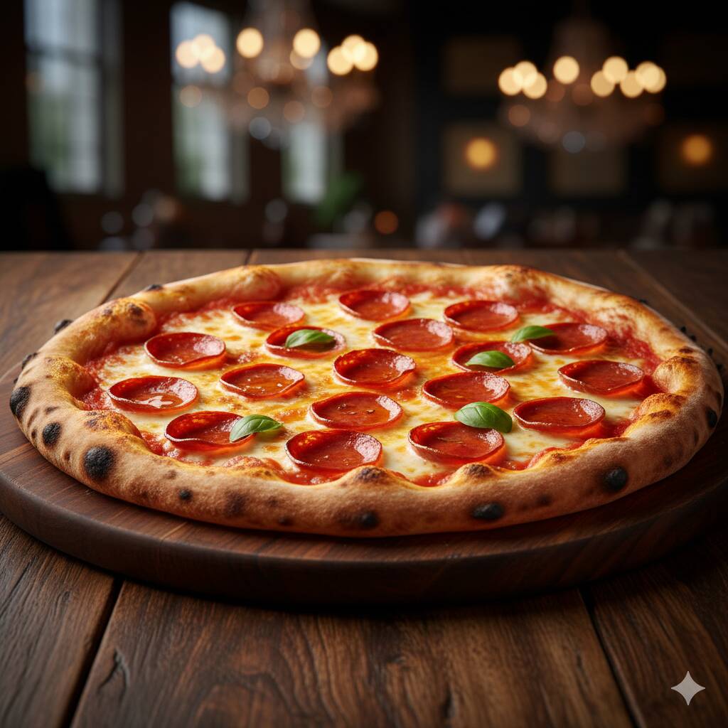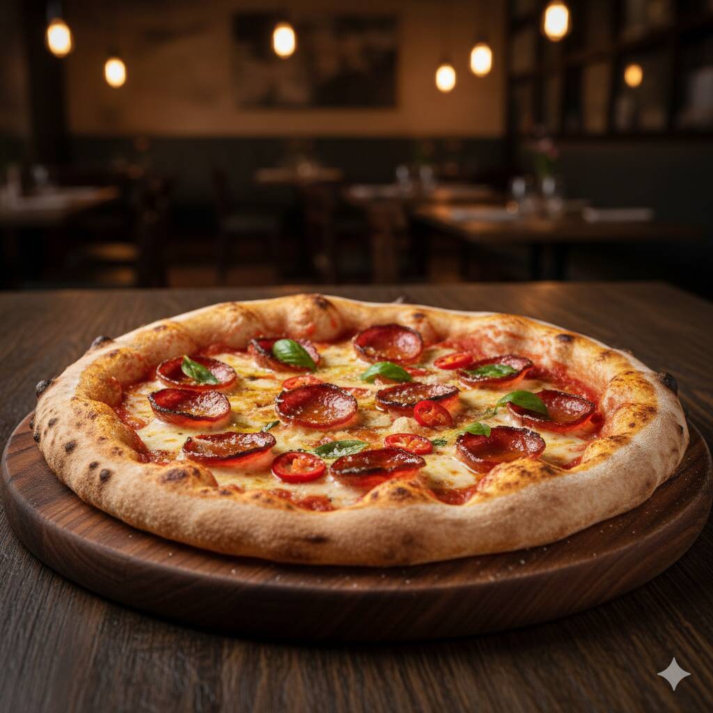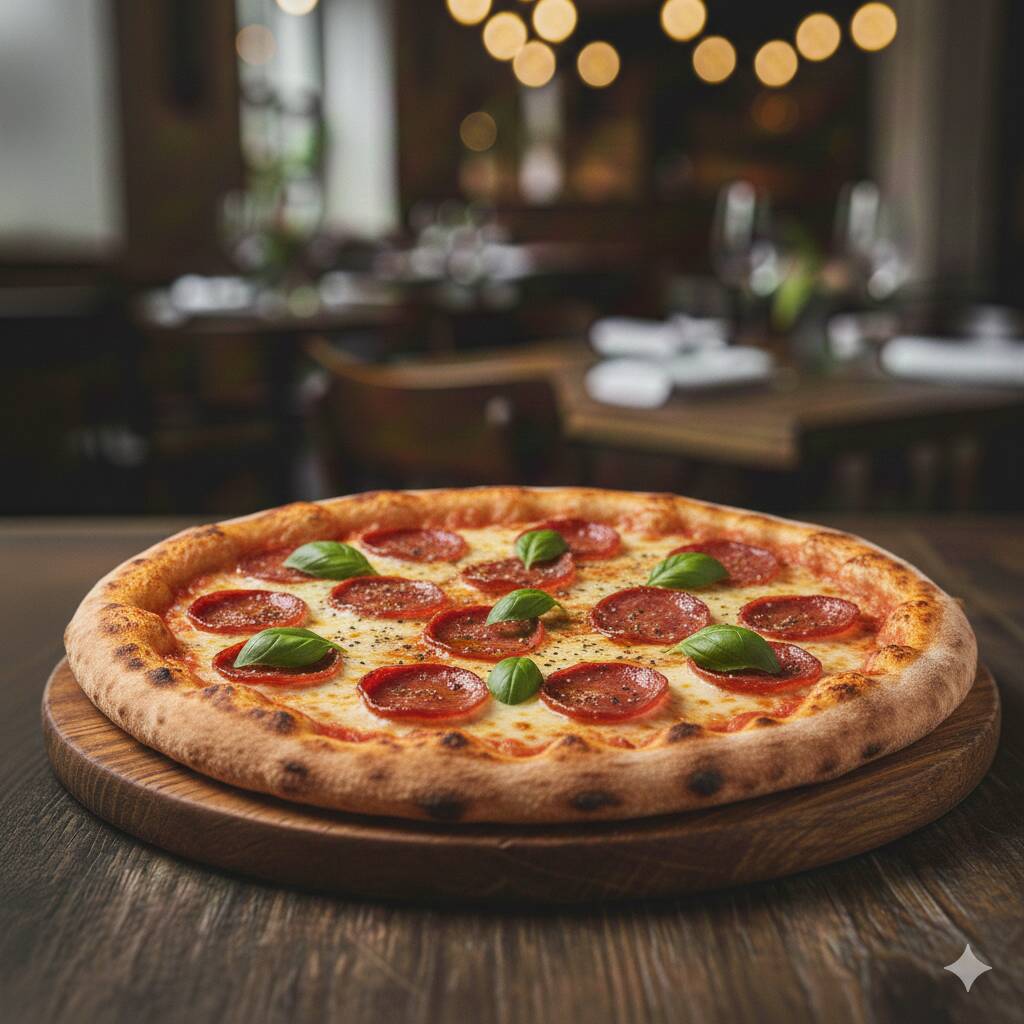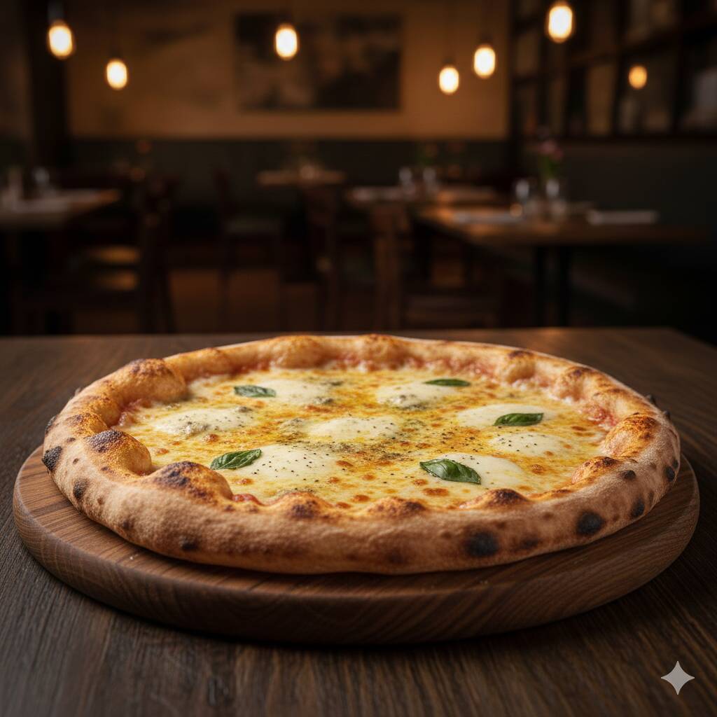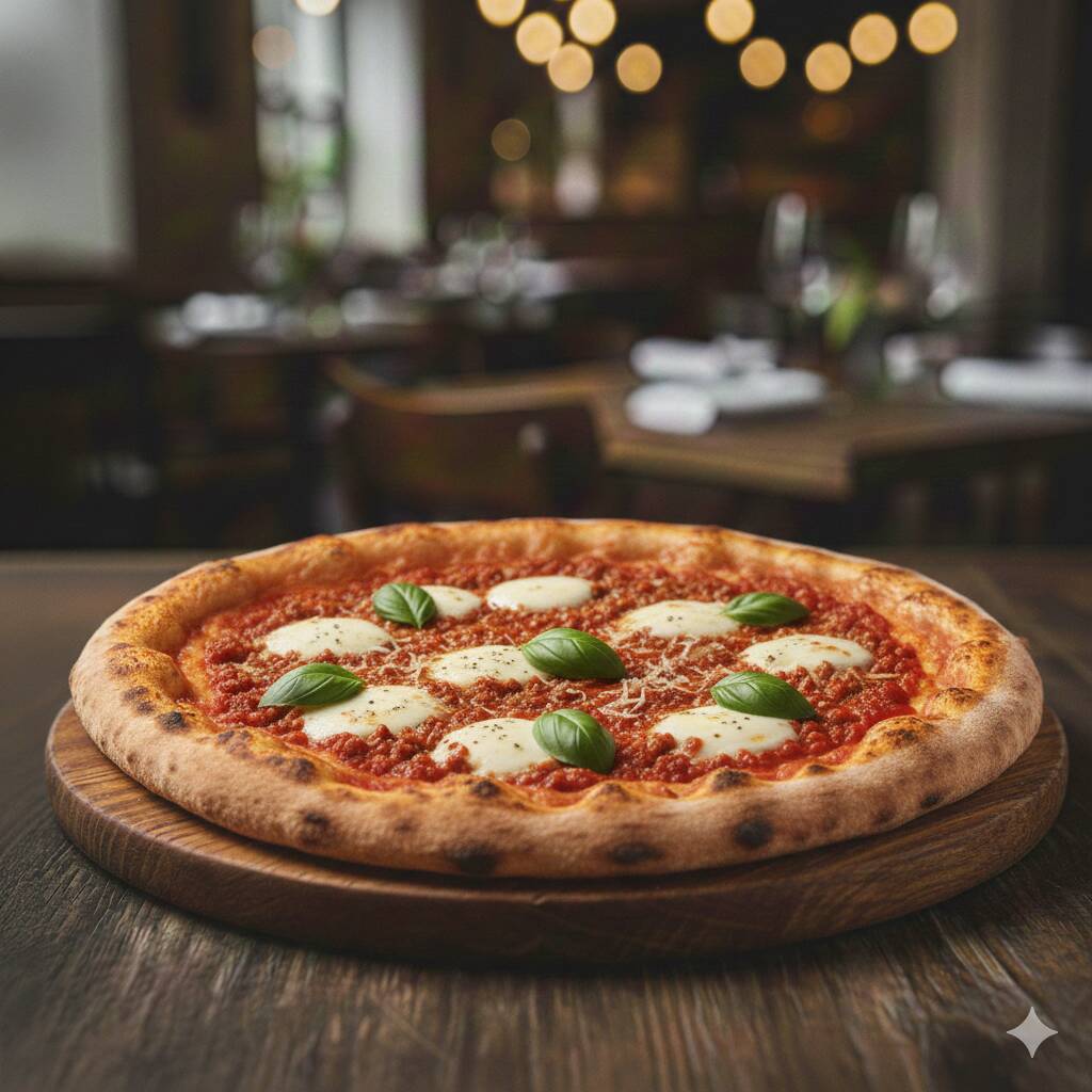 Mozarella, bolognesa, aceituna verde y parmesano.