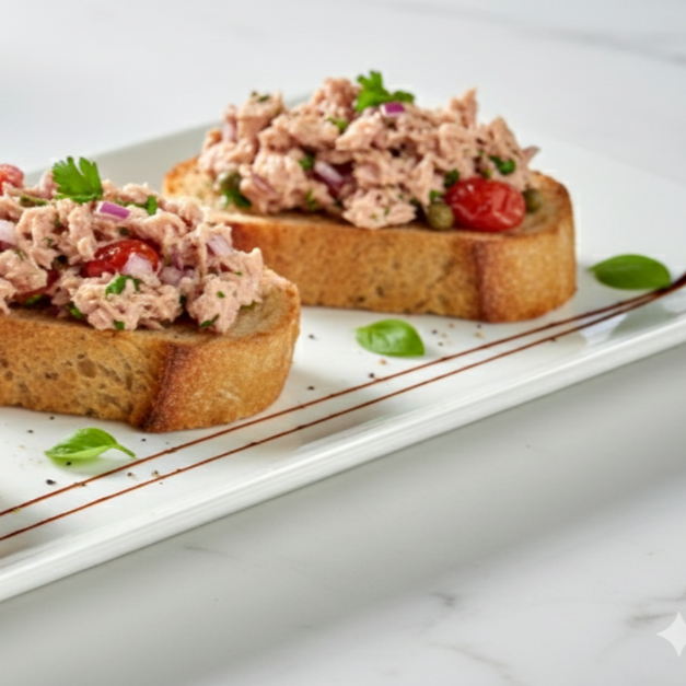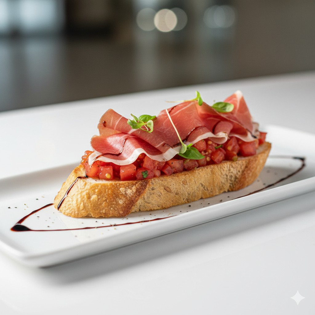 Servidas en pan de la casa con mezcla de jitomate balsámico y aceite de oliva.