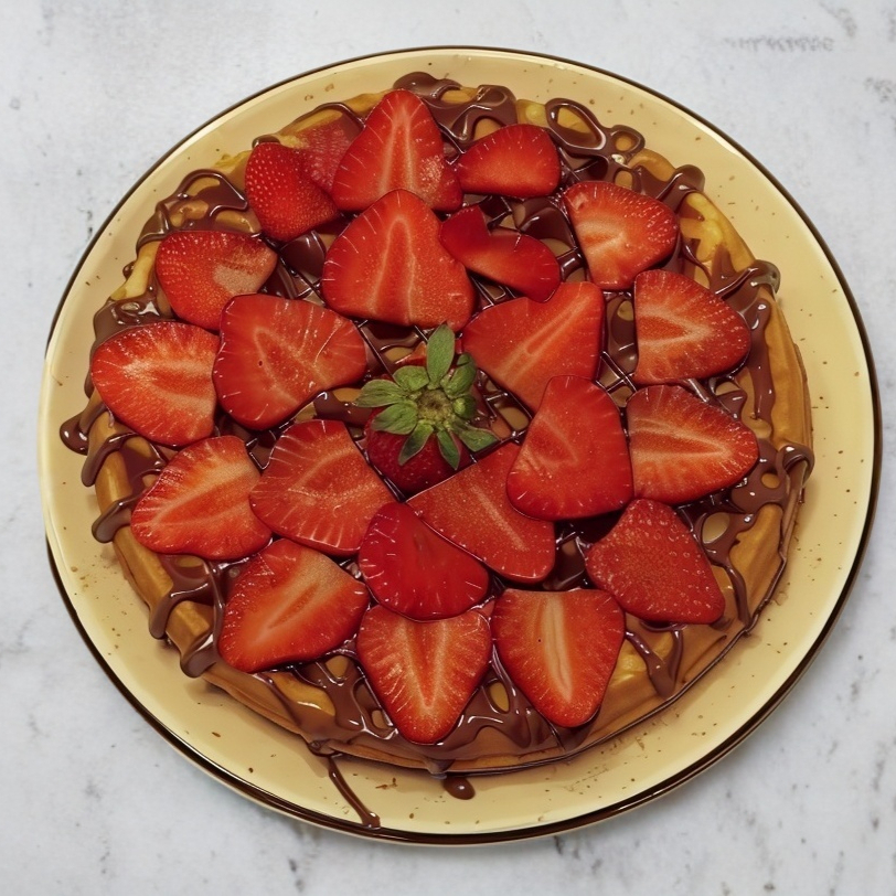 Waffle crujiente con toppings a elegir: Nutella y fresas, frutos rojos o fresas con miel.