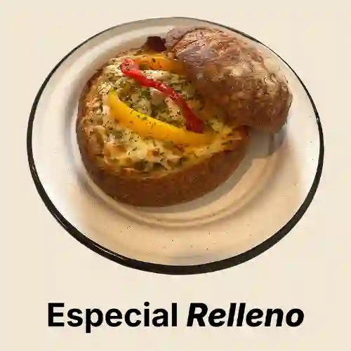 Pan campesino de masa madre, relleno de champiñones, tocino, pechuga de pavo braseada, queso parmesano, manchego y una costra de queso gouda.