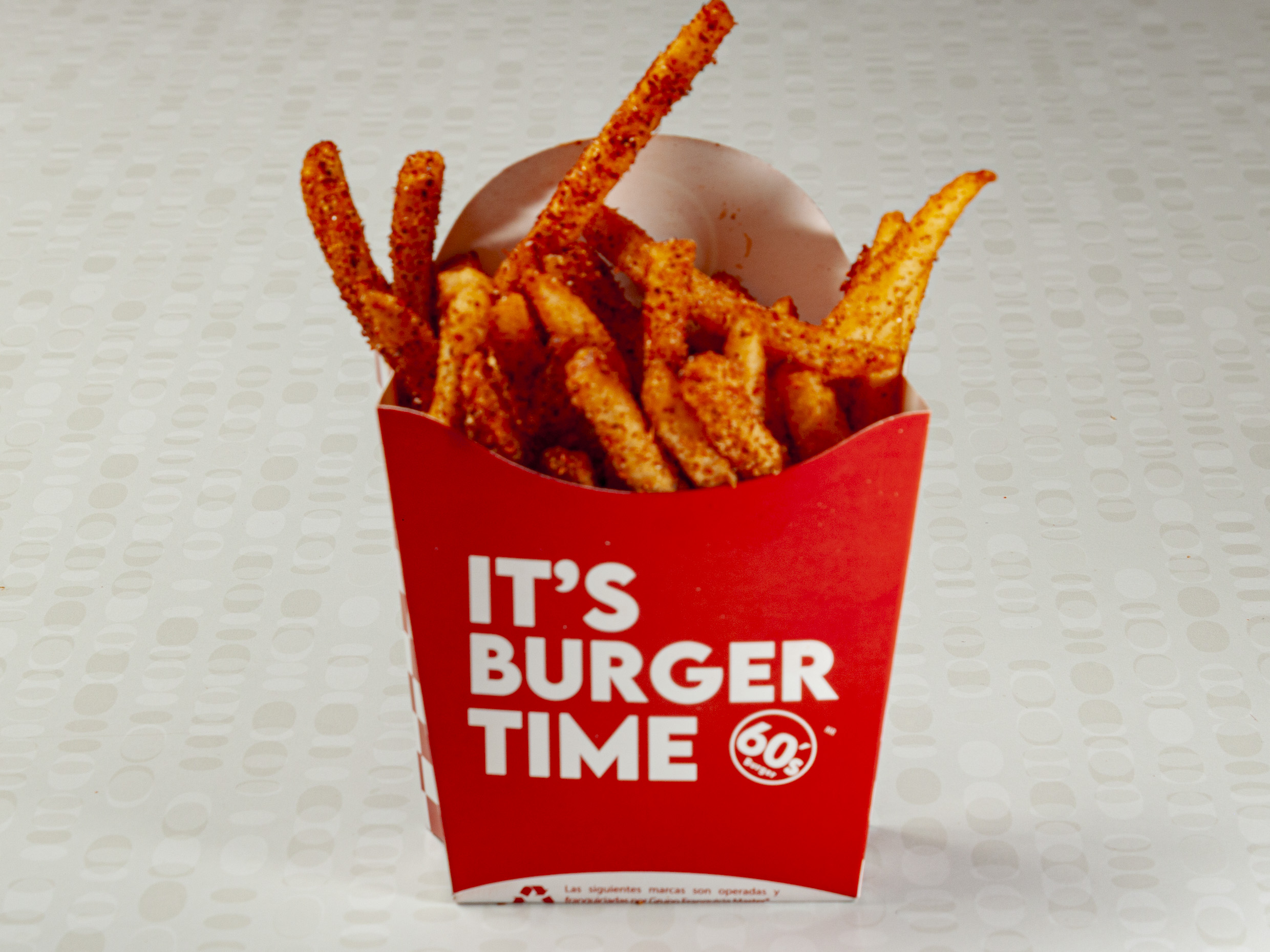 Papas a la francesa grandes 150 g, sazonadas con polvo picosito.