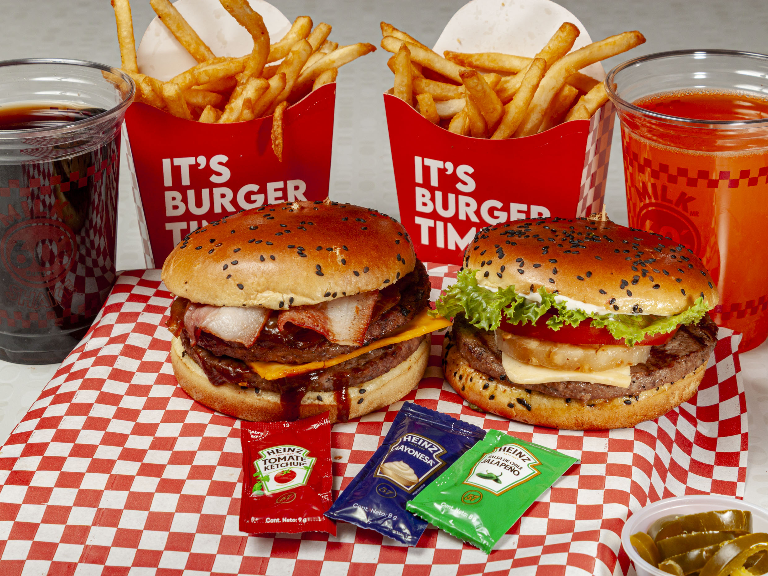 2 Hamburguesas sencillas de tu preferencia (bacon BBQ, hawaiana, Philadelphia, golden, chipotle, the original), a un precio especial.