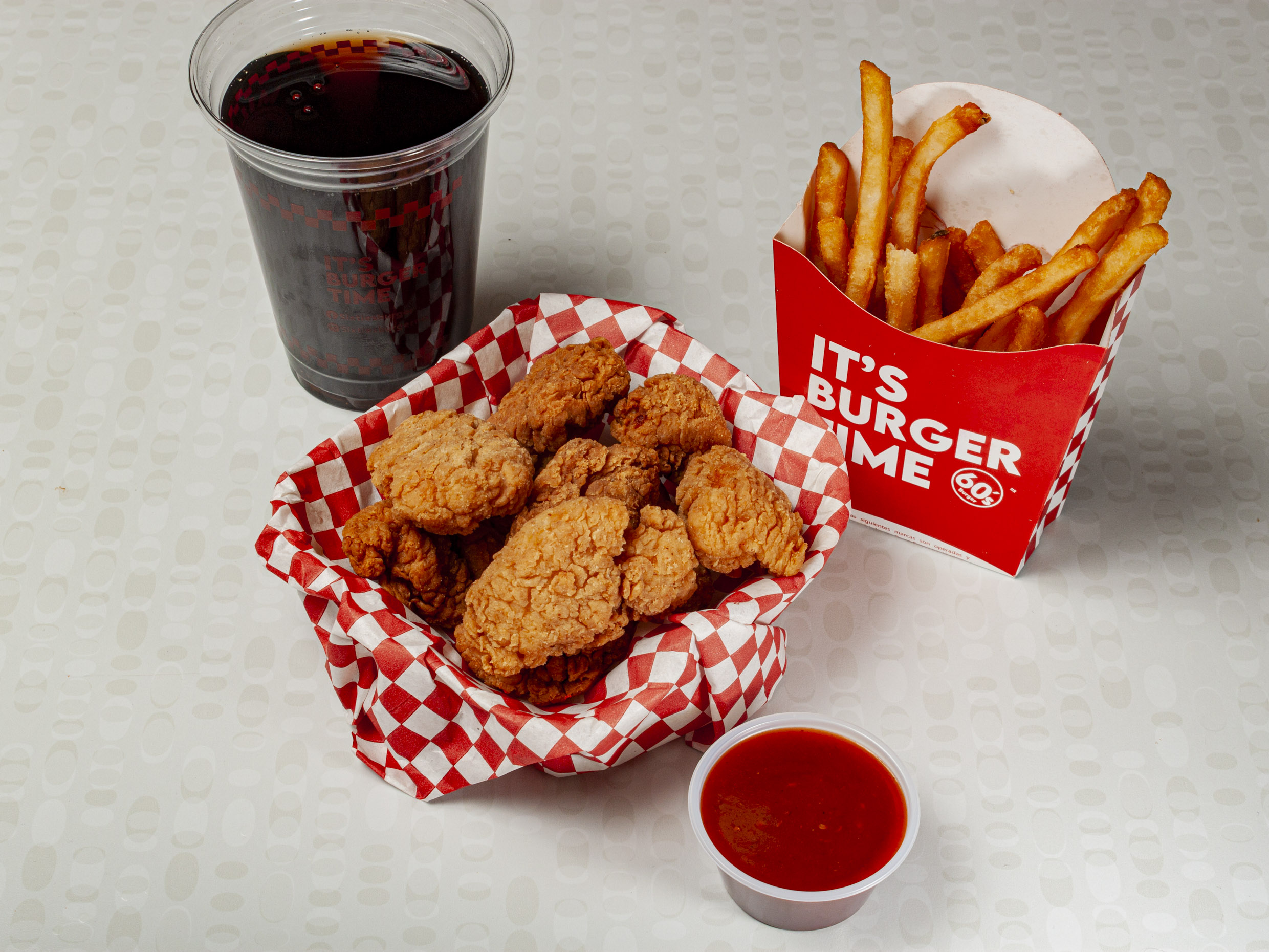Hamburguesa de boneless salseados en xtra hot Buffalo, mango habanero o BBQ, papas a la francesa medianas y refresco de lata 355 ml a elección.