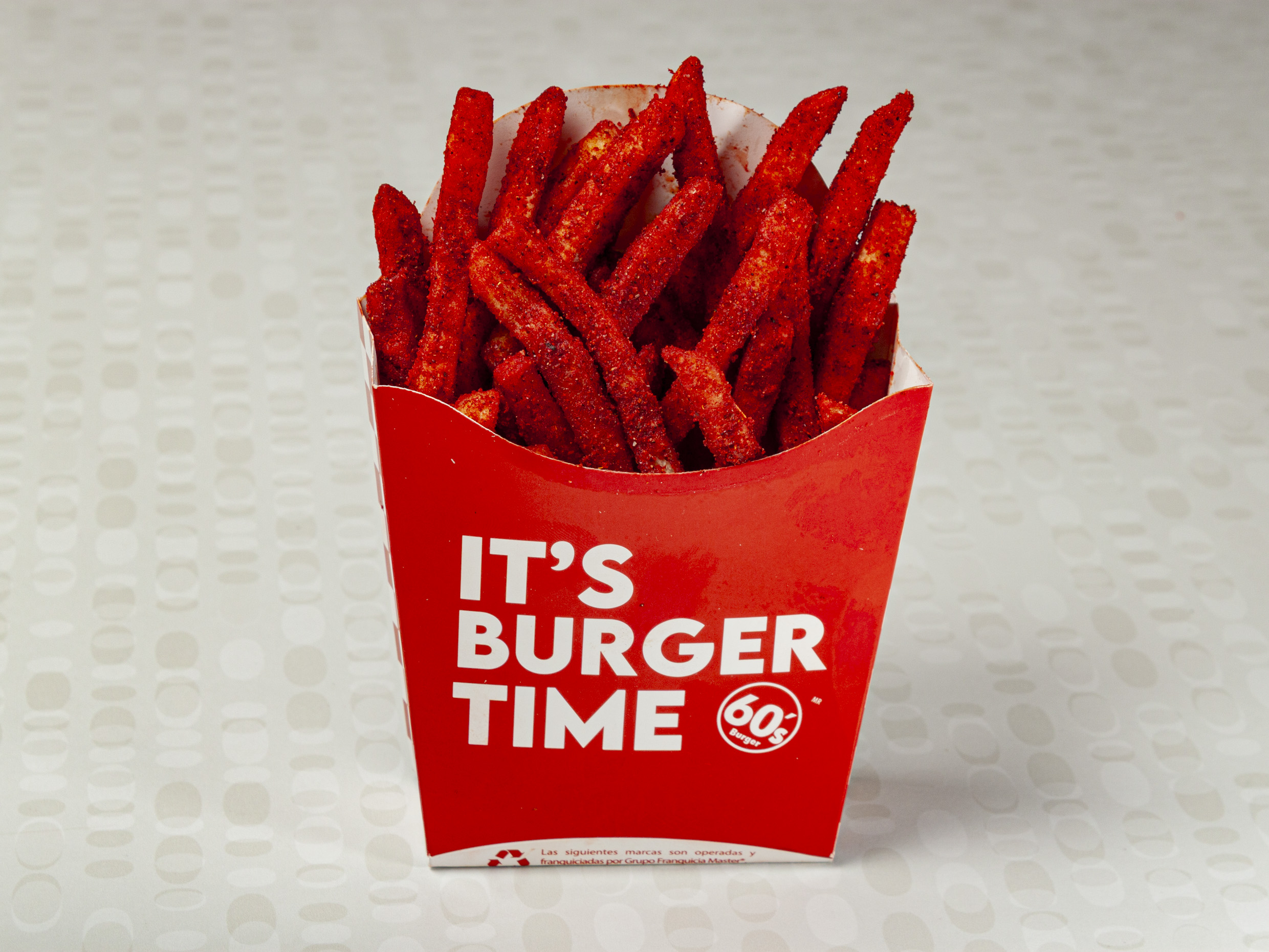 Papas a la francesa grandes 150 g, sazonadas con polvo picosito.