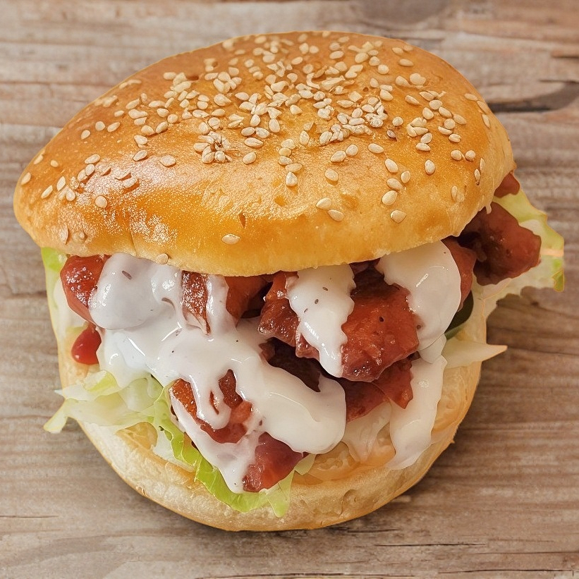 CARNE SMASH + DOBLE QUESO AMERICANO + TOCINO + PIÑA +JALAPEÑOS + ADEREZO RANCH + ADEREZO ESPECIAL + CATSUP