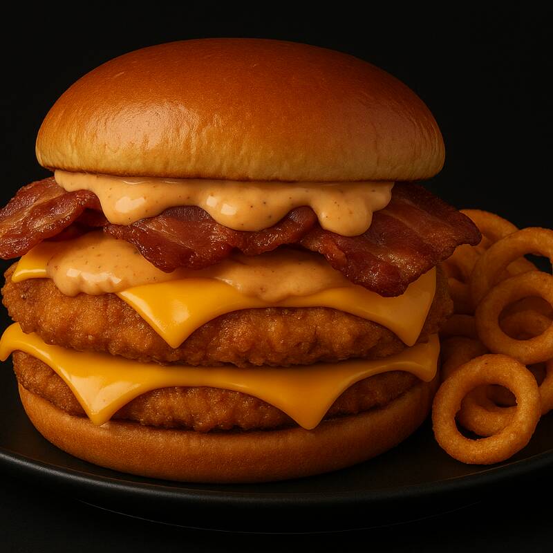 CARNE DE POLLO + TOCINO + DOBLE QUESO AMERICANO + ADEREZO CHIPOTLE + ADEREZO ESPECIAL