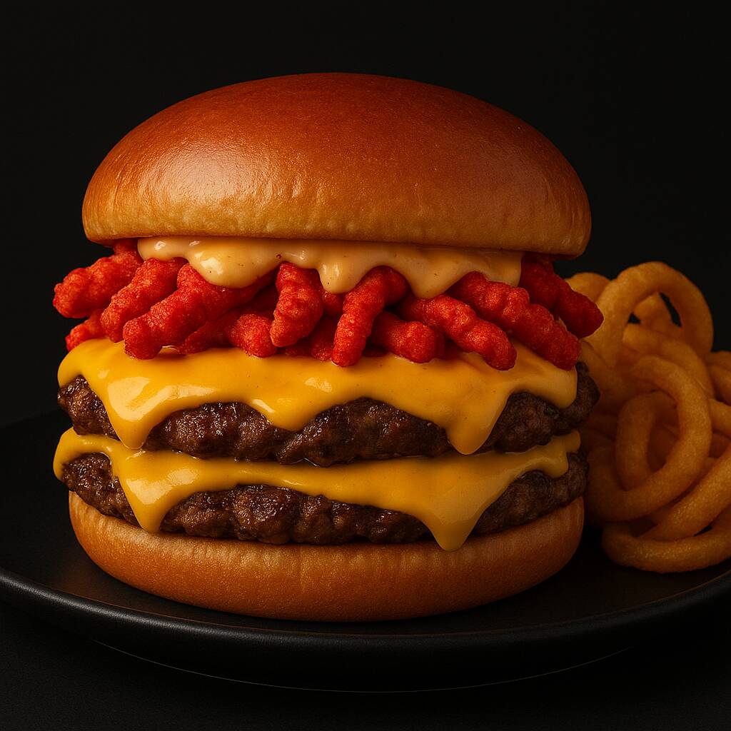 CARNE SMASH + DOBLE QUESO + CHETOS FLAMING HOT + ADEREZO CHEDDAR + ADEREZO ESPECIAL + ADEREZO CHIPOTLE