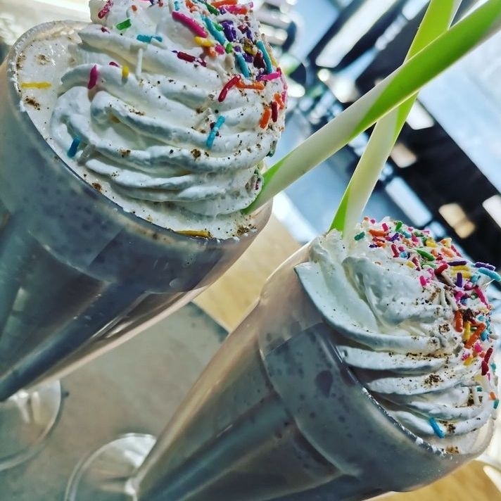 Bebida espesa hecha con harto helado, un toque de leche y tu sabor favorito, acompañada de crema batida, canela, azúcar glass y chispitas.
