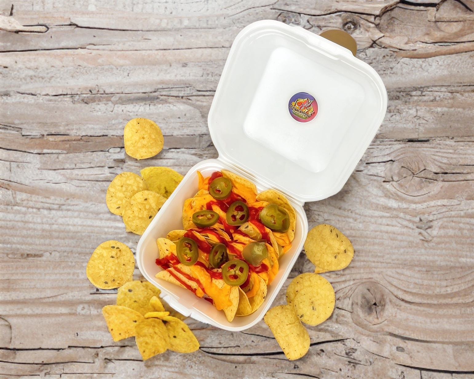Nachos con queso amarillo, cátsup y jalapeños. ¡Deliciosos y perfectos para compartir! 🌮🧀🌶️