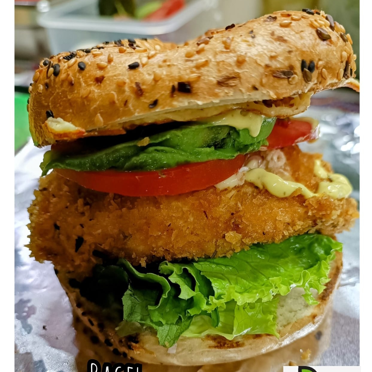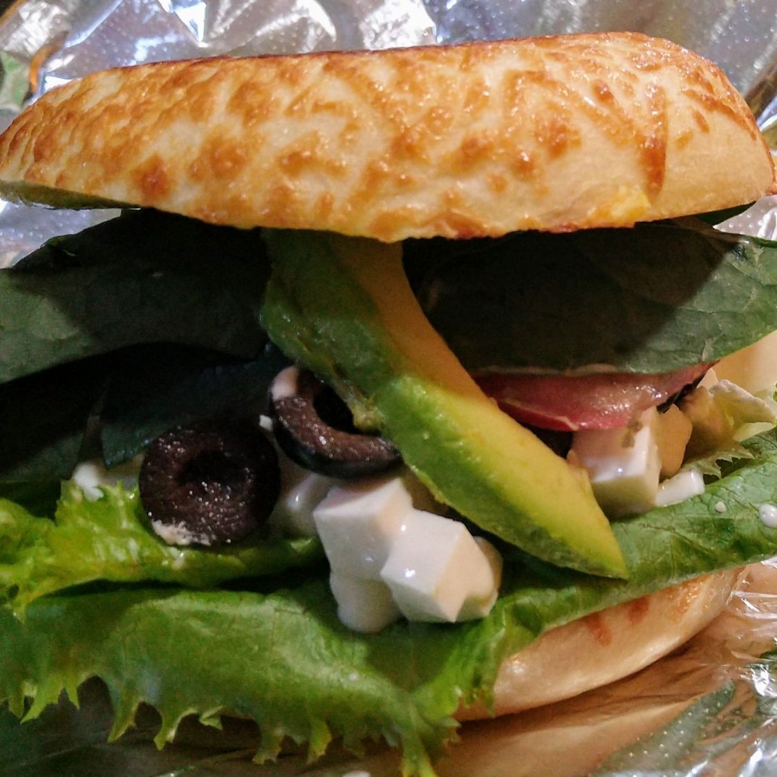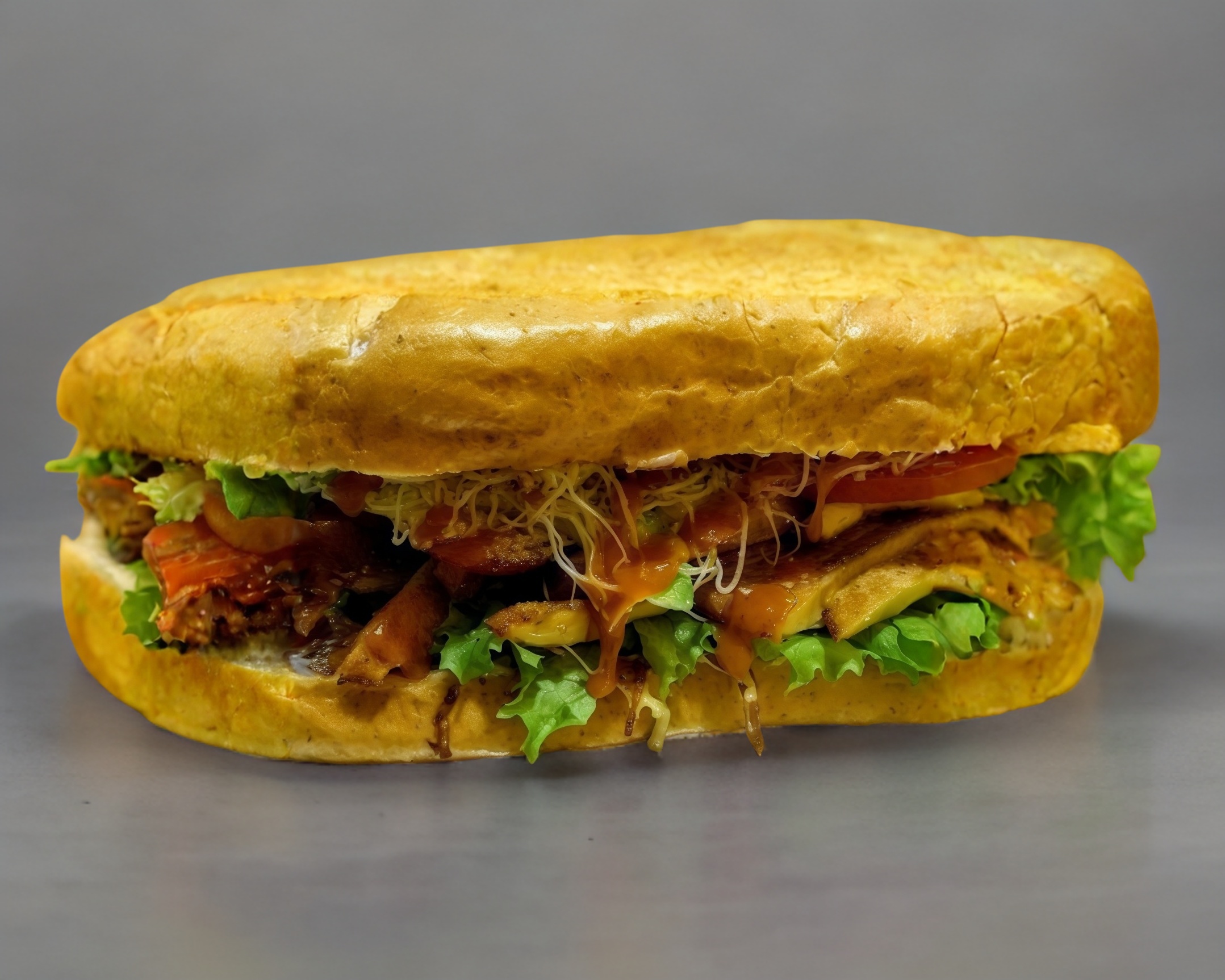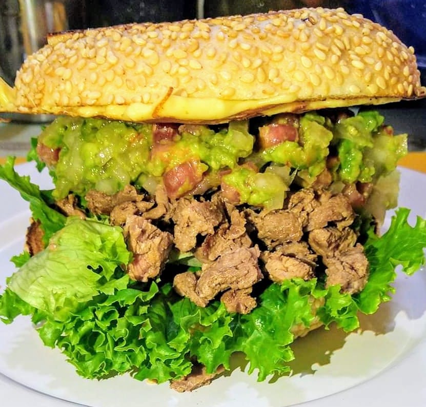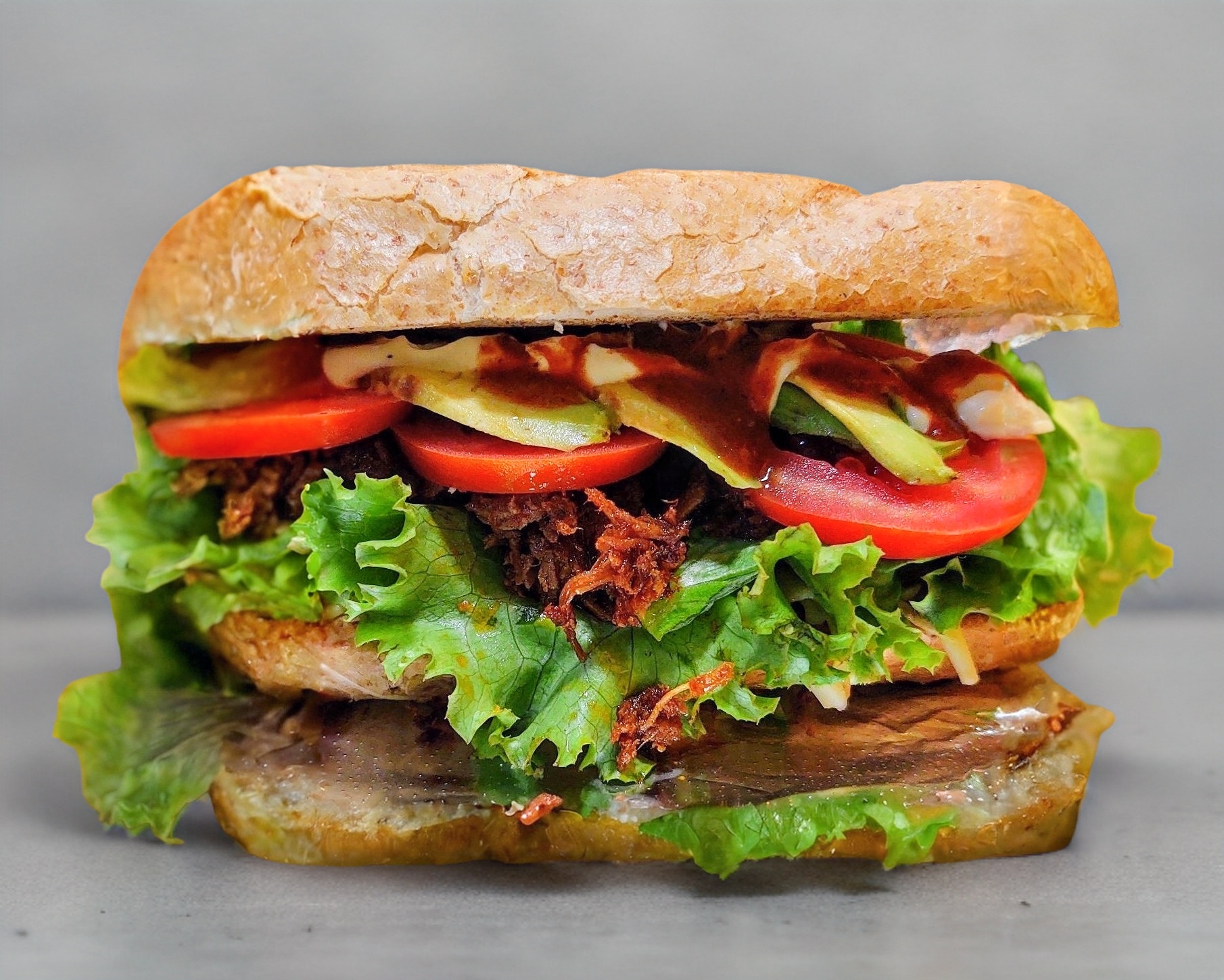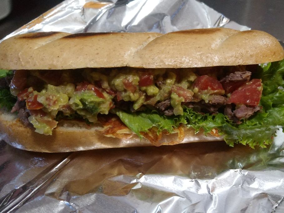 Lechuga Italiana, tomate, aguacate, germen de alfalfa, milanesa de res, queso, ad. mayo-moz.