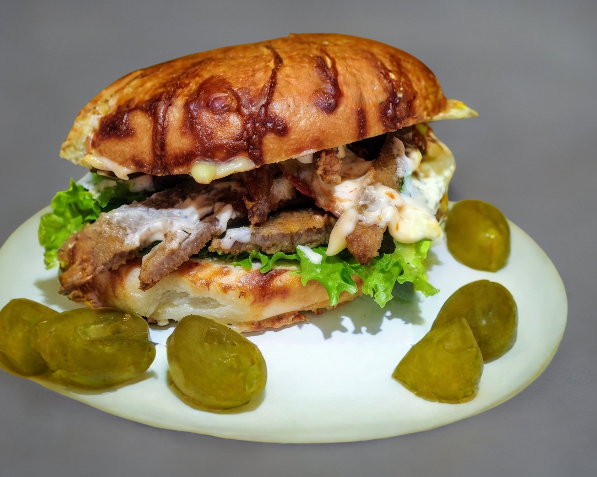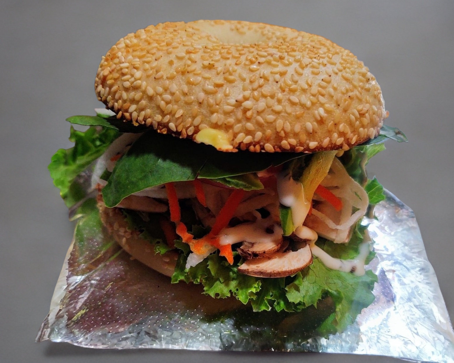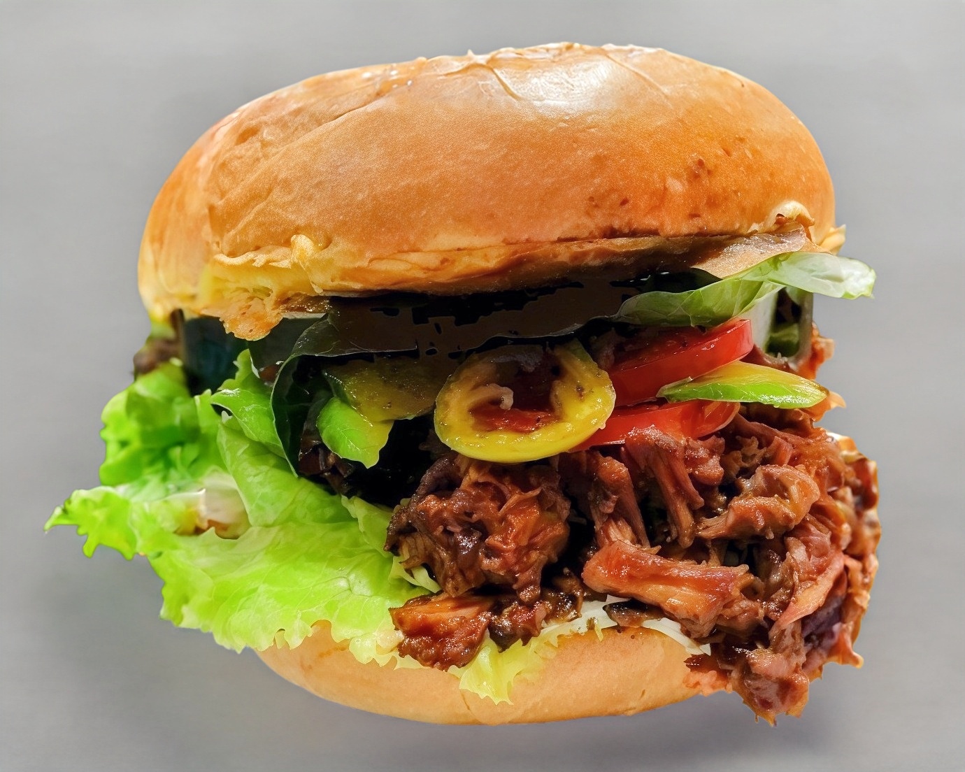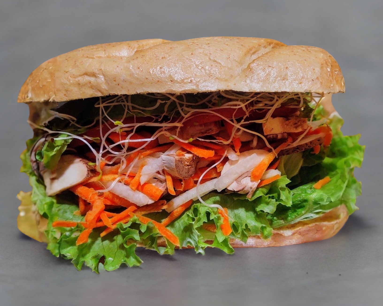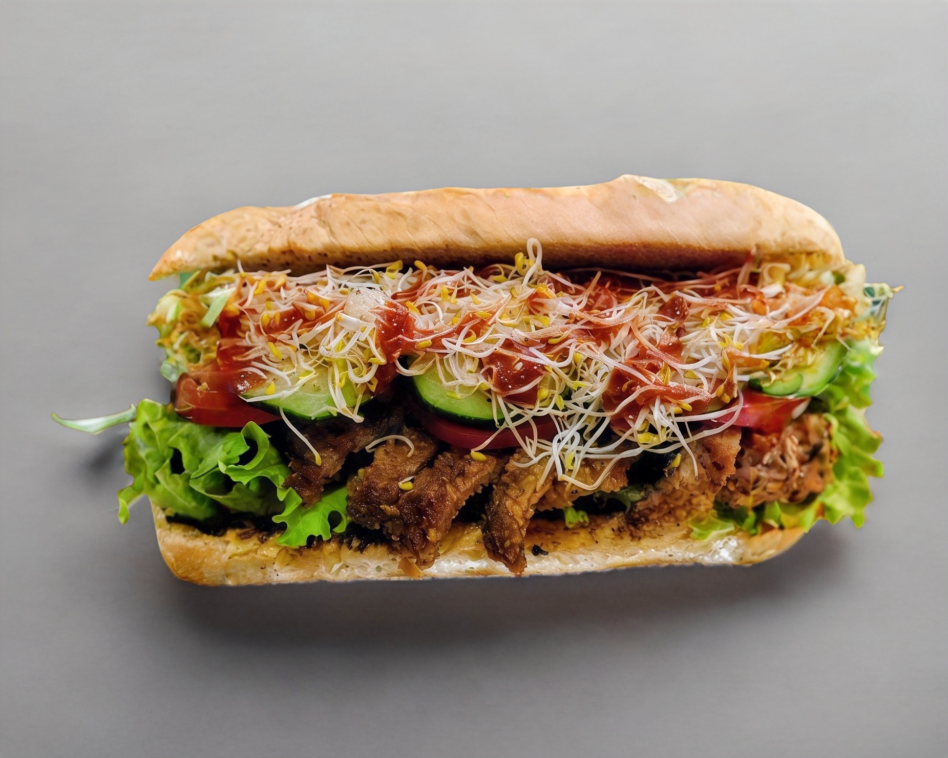 Lechuga Italiana, tomate, aguacate, germen de alfalfa, milanesa de res, queso, ad. mayo-moz.