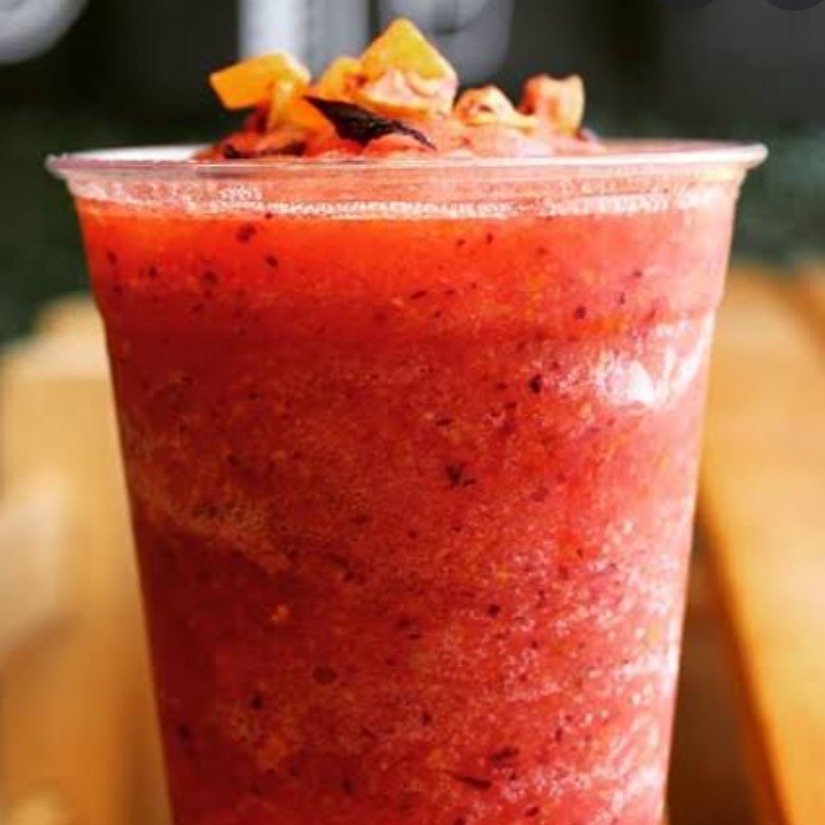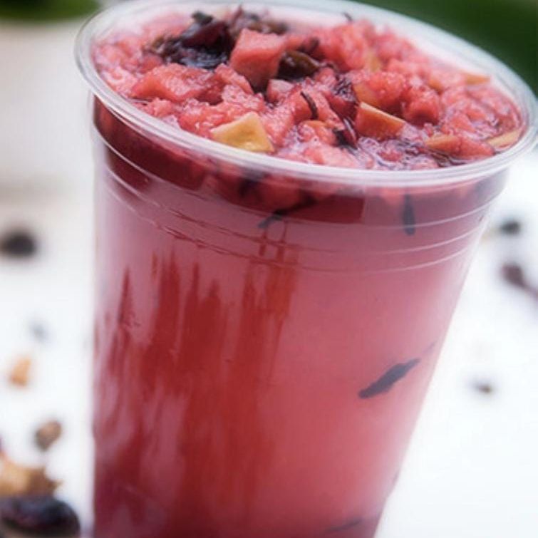 infusioón de hierbas, flores y fruta deshidratada. Frappeada.