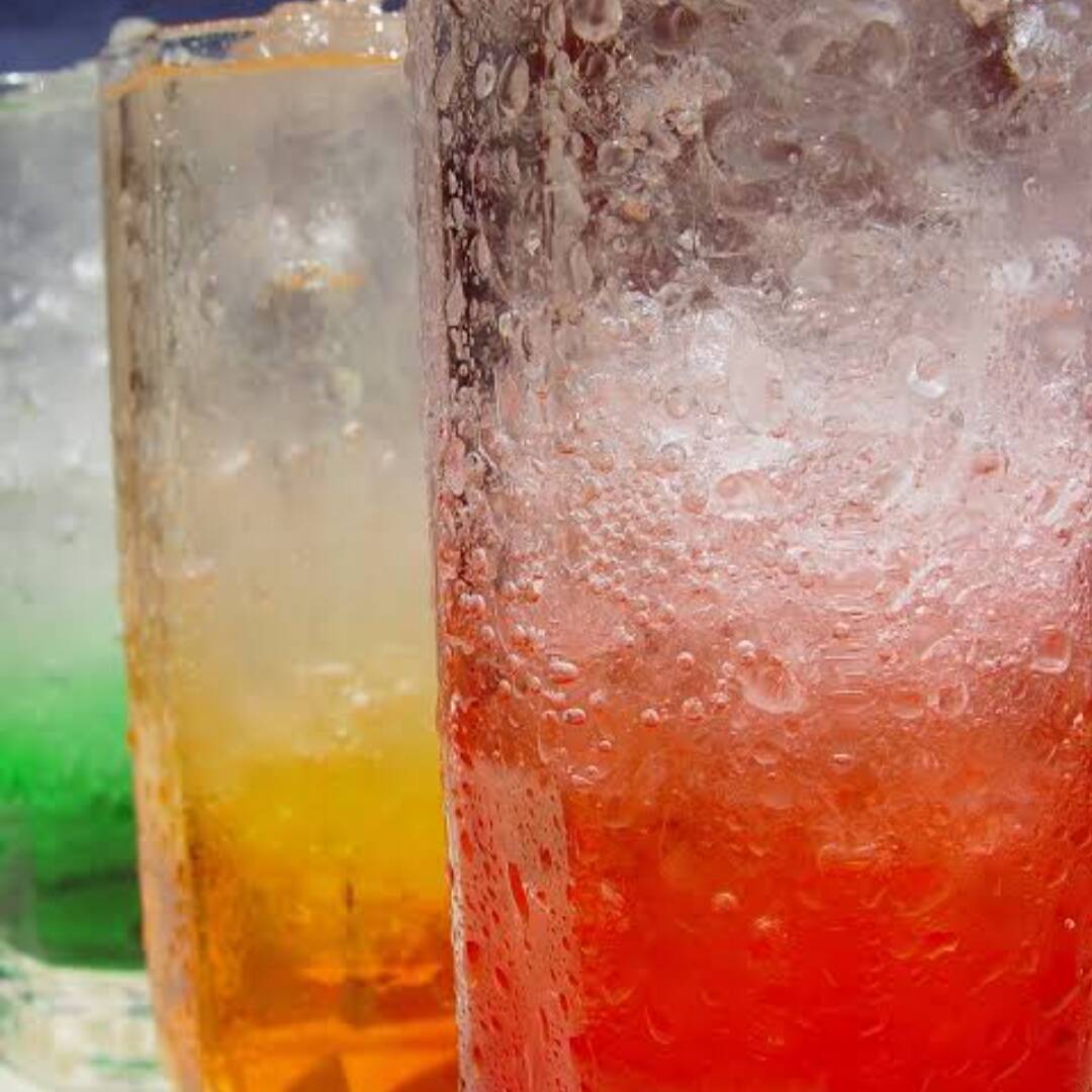 Base de saborizante, jarabe simple, agua mineral y hielo.