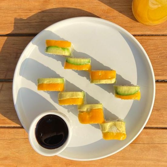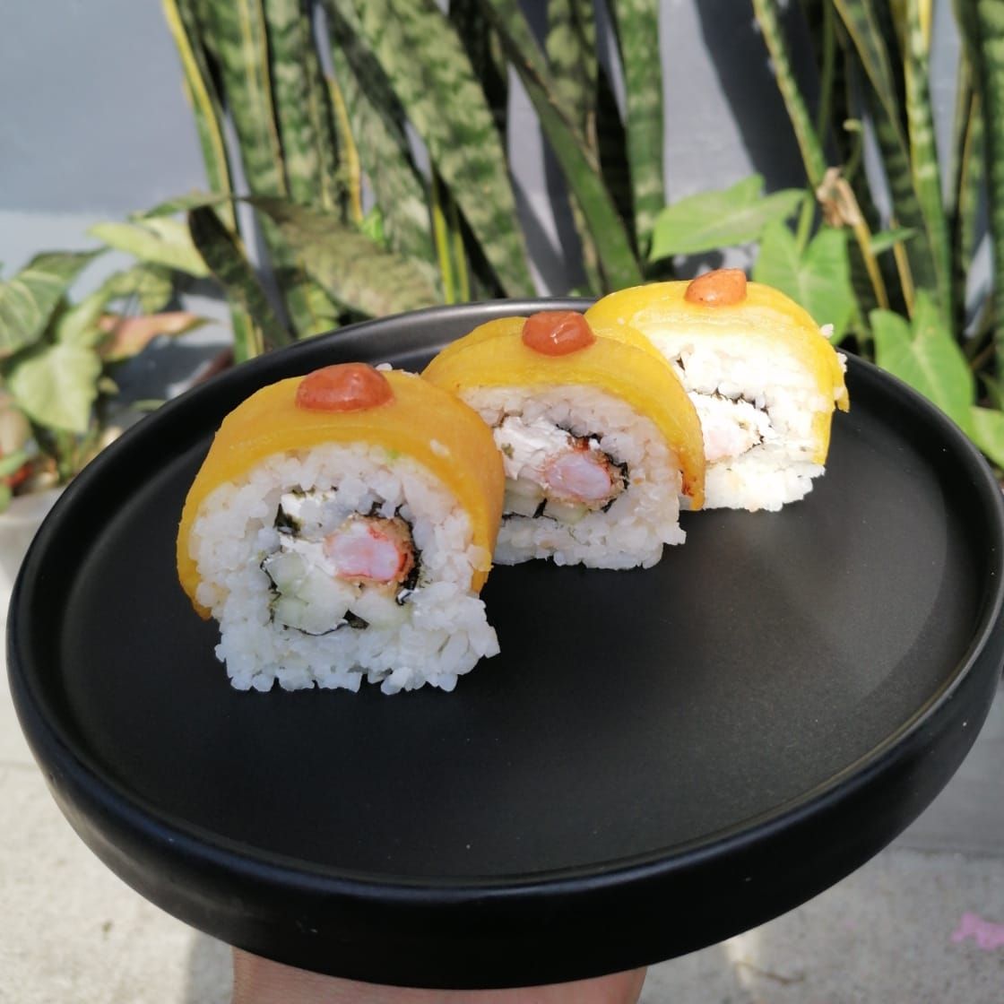 PD. Camarón, pepino y queso crema. Pf: Mango y sesamo