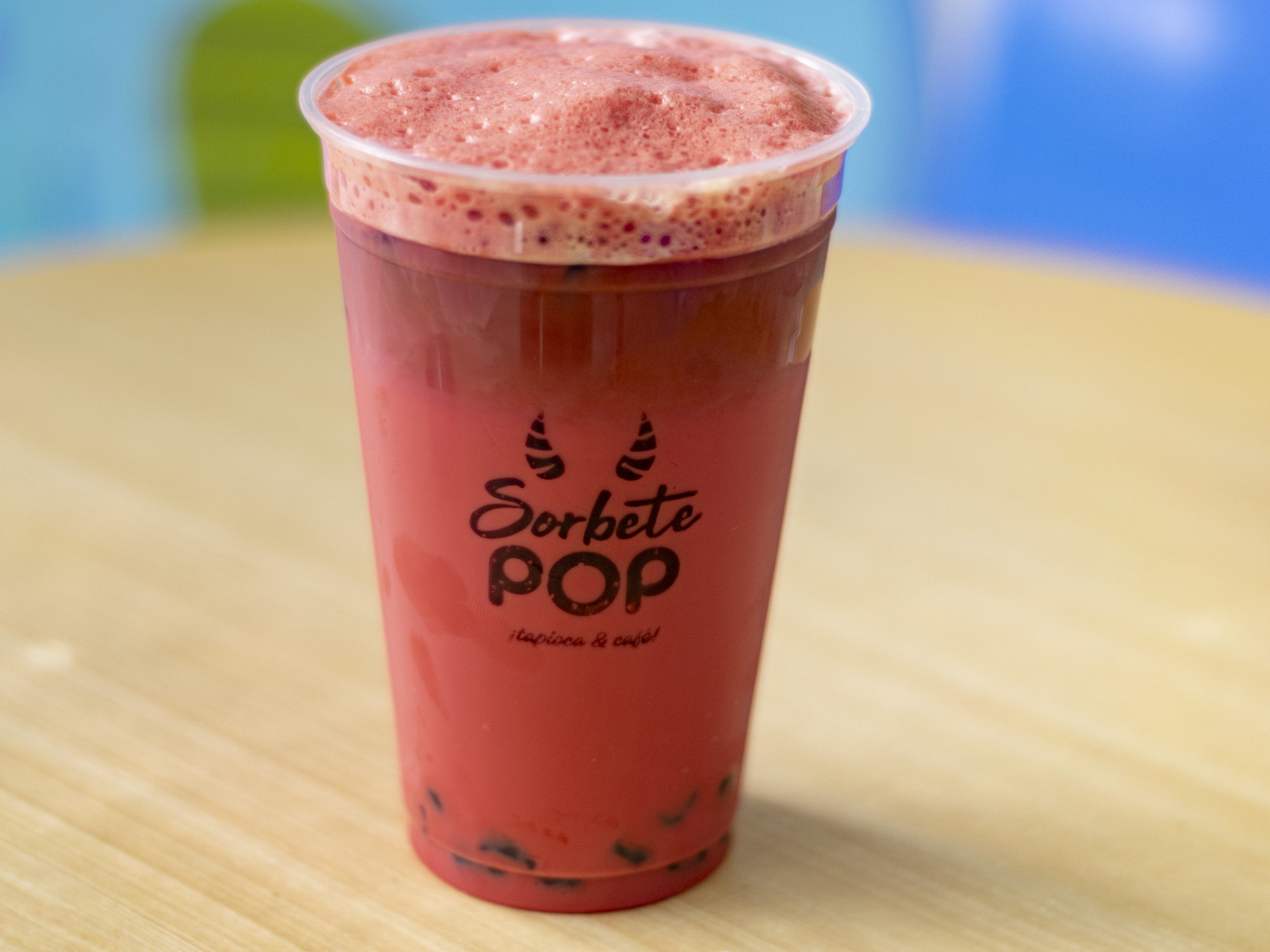 16oz, base leche, sabor taro con pops de yogurt y tapioca