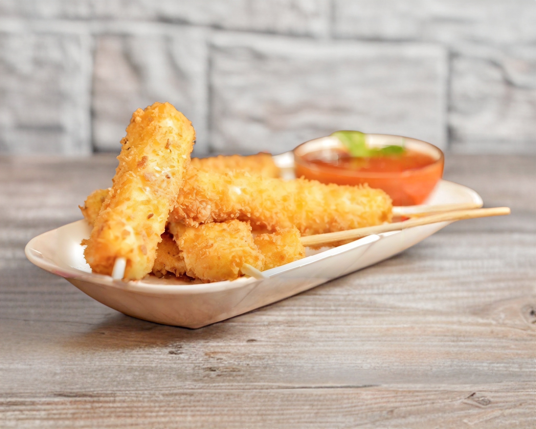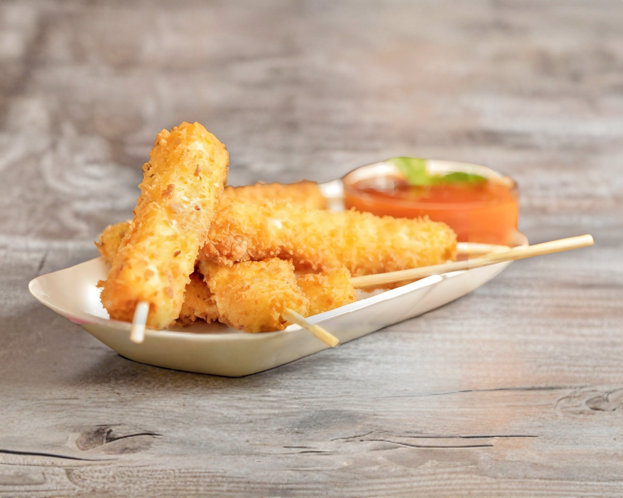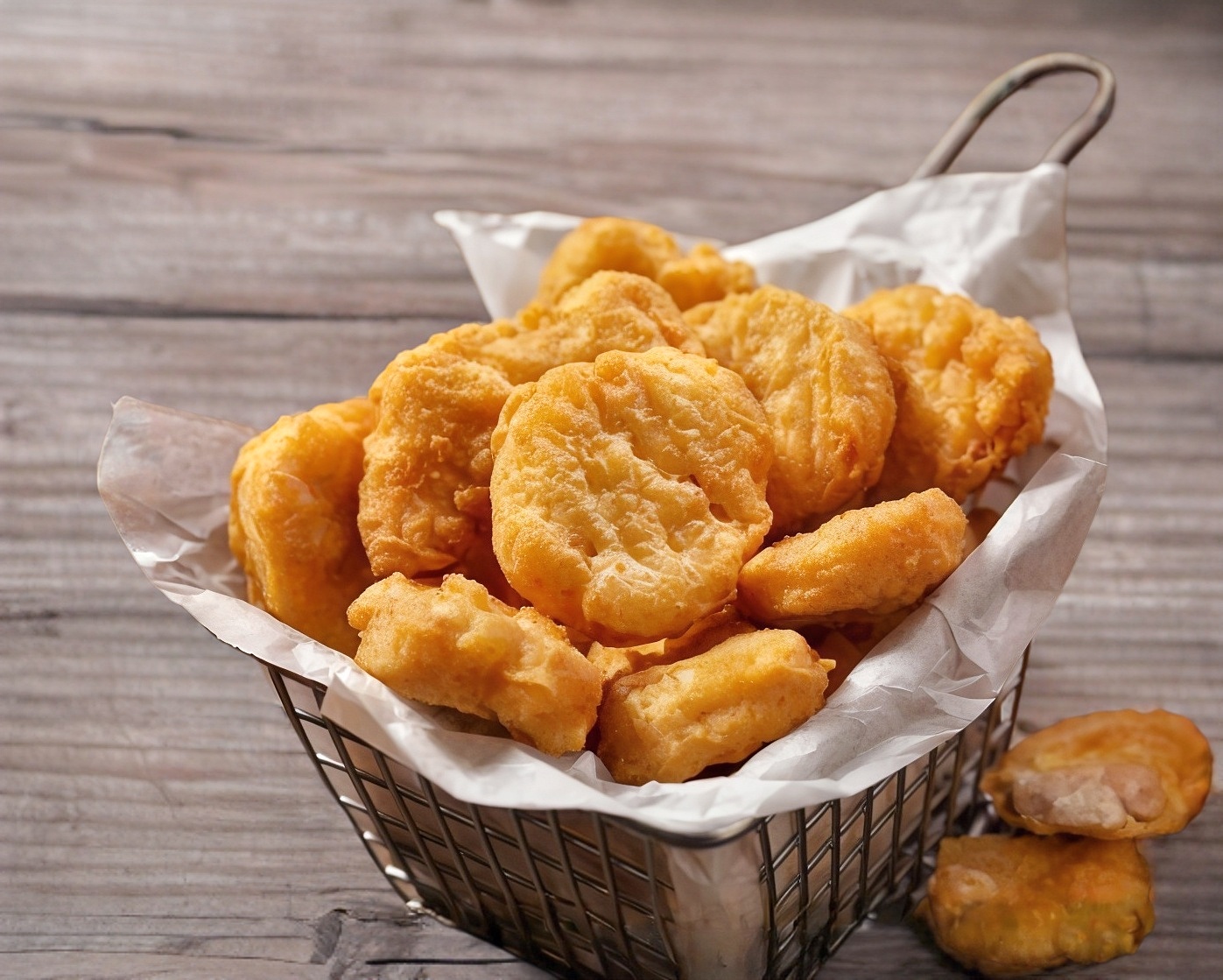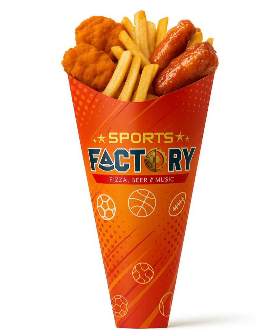 4 Dedos de queso, 150 gr de papas sports, 5 nugettes y 5 alitas