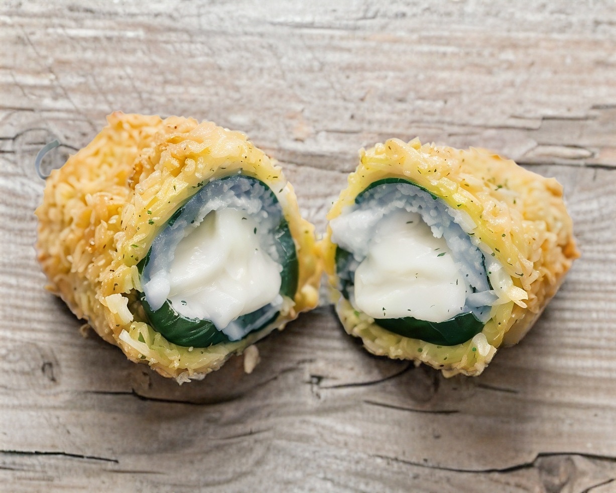 Queso, tocino, salchicha, chorizo y chiles jalapeños.