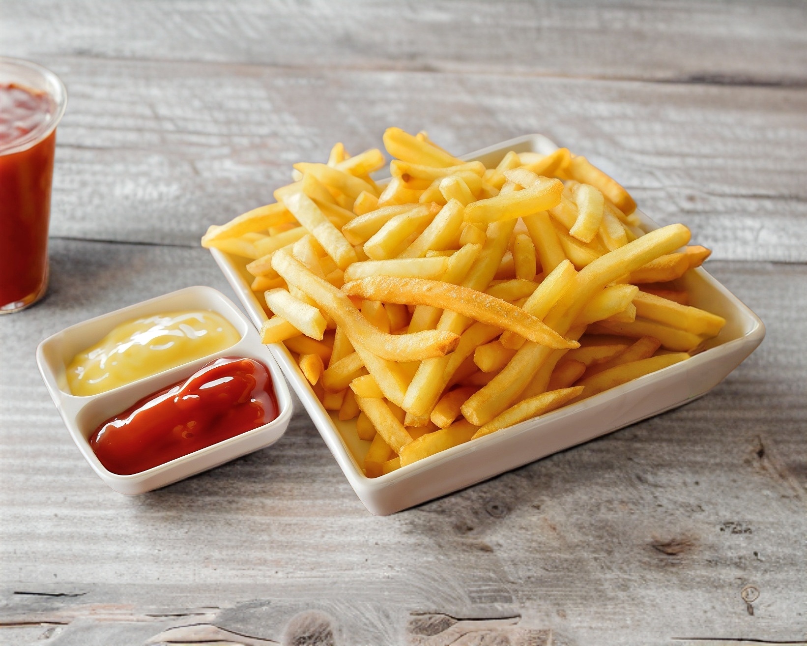 Pollo, queso tocino y jamón, incluye papas a la francesa