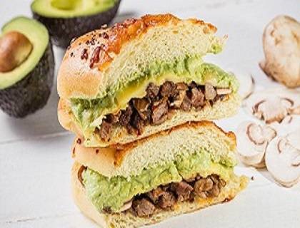 Chapata con jamón, queso panela, tocino, guacamole y mayonesa chipotle.