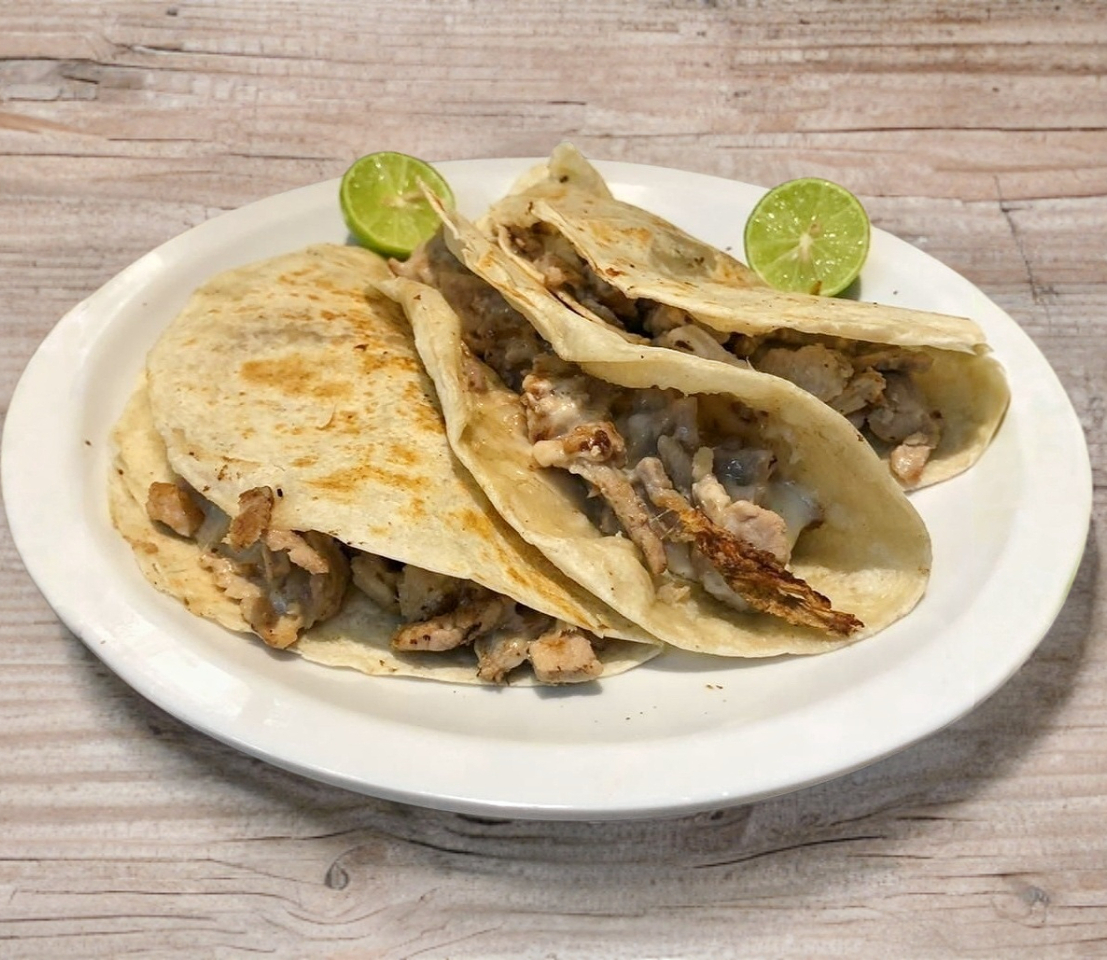 3 Pzas, de Tortillas de harina, bistec, queso Oaxaca.