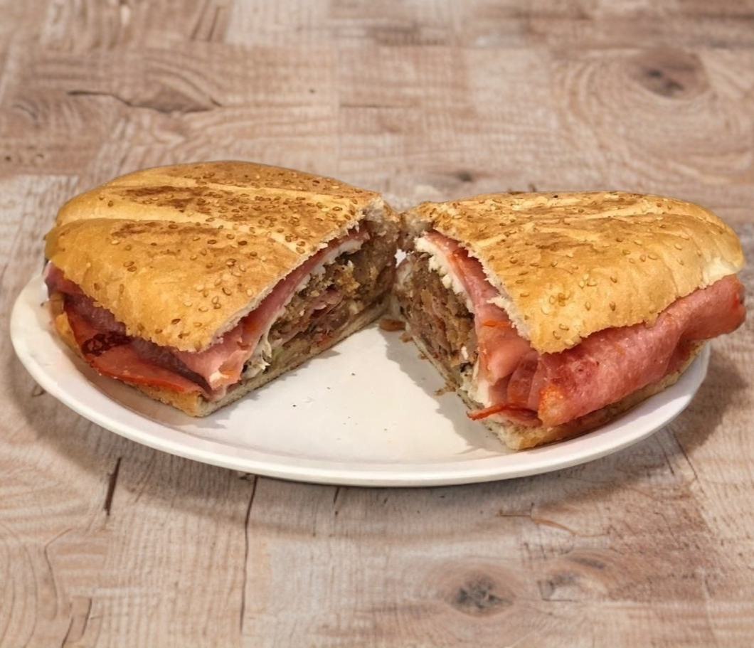 Pierna, jamón,salchicha, pastel pimiento, queso oaxaca.