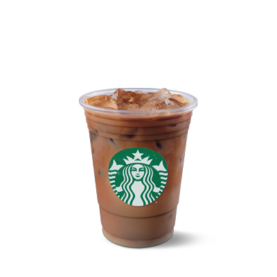 Café Espresso mezclado con jarabe de vainilla tostada, cubierto con leche de avena, y hielos