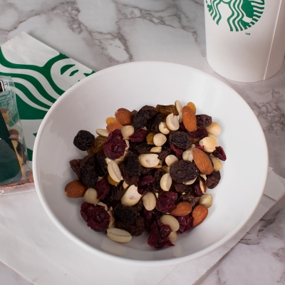 Mezcla de nuez de la India, almendra, arándano, pasas y cacahuate (291 kcal)