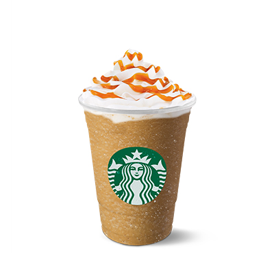 Clásico Frappuccino® de café intenso mezclado con jarabe de Caramelo, leche y hielo molido