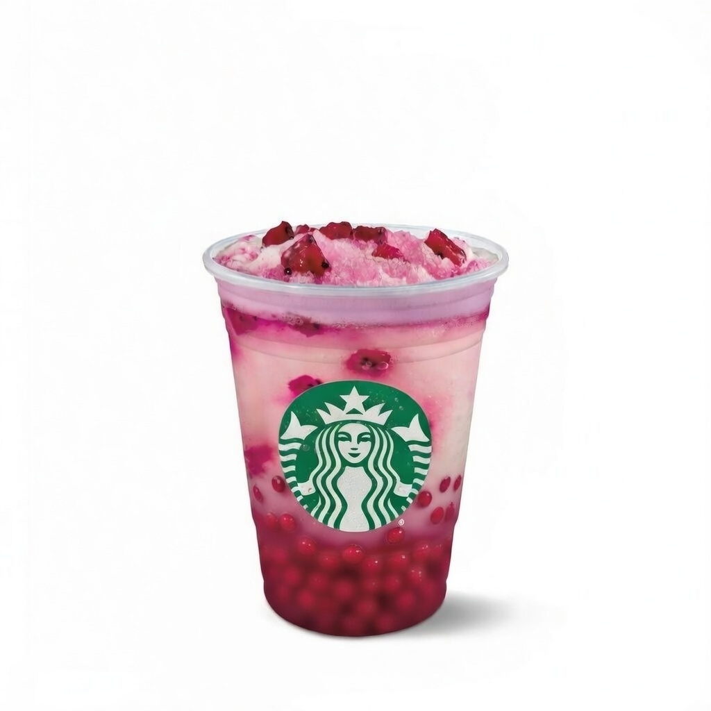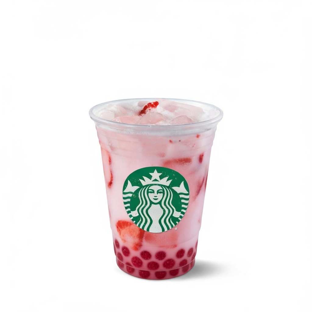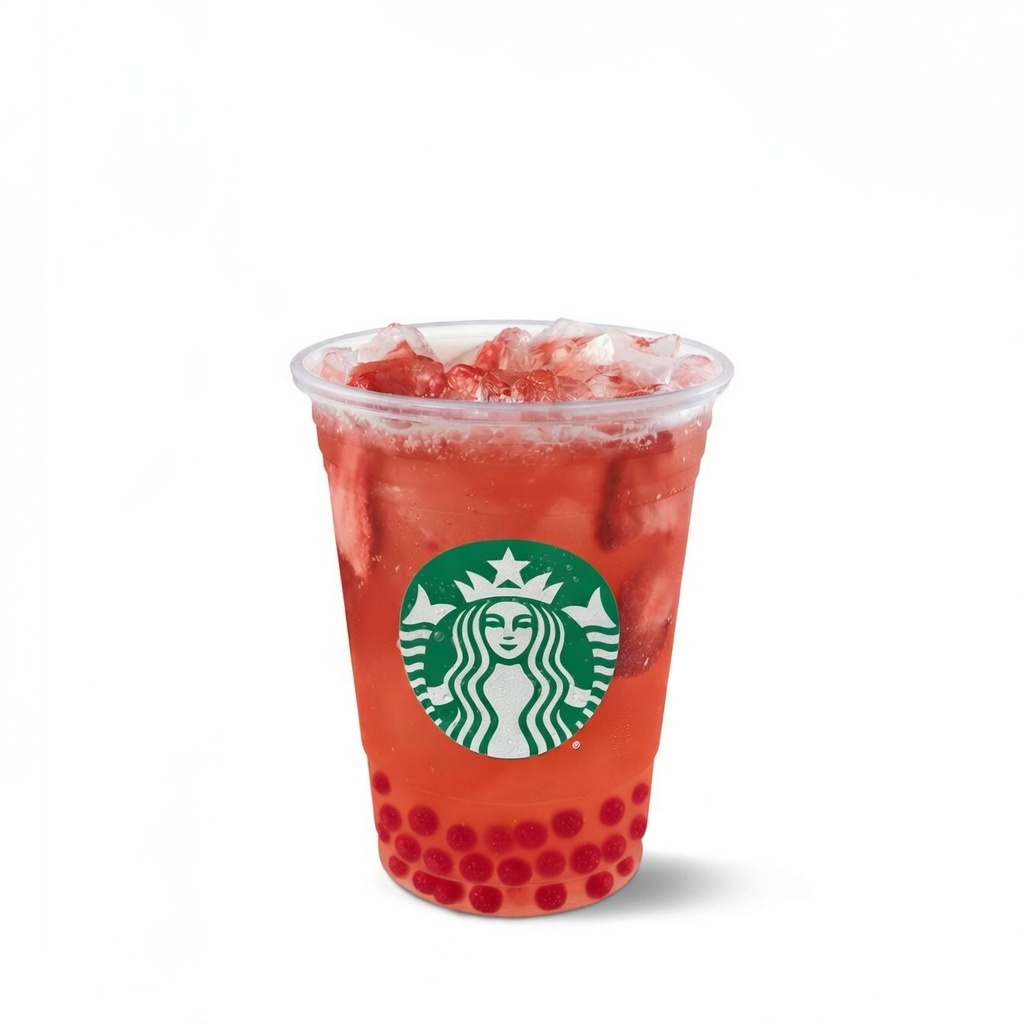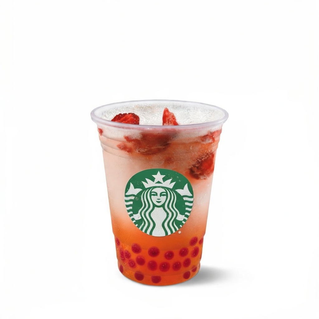 Nuestro exclusivo extracto de café verde mezclado con un refrescante concentrado de frutas, inclusiones de fresa, limonada y hielo