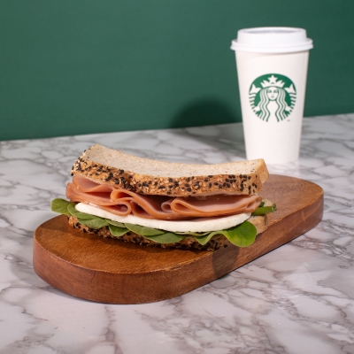 Sándwich de pan multigrano, jamón de pechuga de pavo, queso panela, espinacas y aderezo de yogurt (462.4 kcal)
