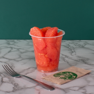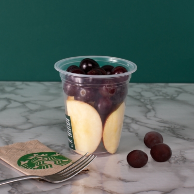 Una refrescante mezcla de jugos de fruta con sabores intensos (fresa y acai), extracto de café verde y trozos de frutas liofilizadas mezclados con limonada y hielo