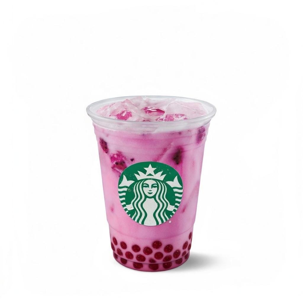 Nuestro exclusivo extracto de café verde mezclado con un refrescante concentrado de frutas, infusiones de pitahaya y hielo