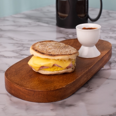 Una deliciosa opción para la mañana, tradicional english muffin con una Frittata de huevo natural, jamón de pavo y queso gouda, aderezado con nuestro aderezo de chipotle (240 kcal)