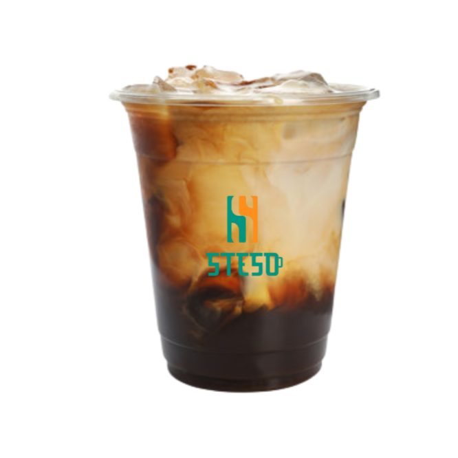 Exquisita mezcla de café americano con leche batida, una fina capa de espuma de leche encima y pizca de canela. Con cubos de hielo en el interior.