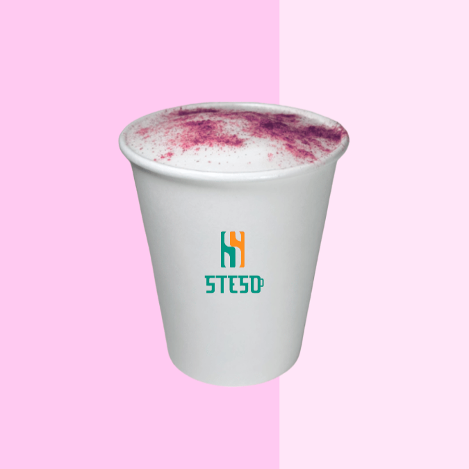 Deliciosa bebida de San Valentin, bebida a base de leche vaporizada, café espresso, jarabe de Blue berry, miel de agave y endulzante de tu preferencia.